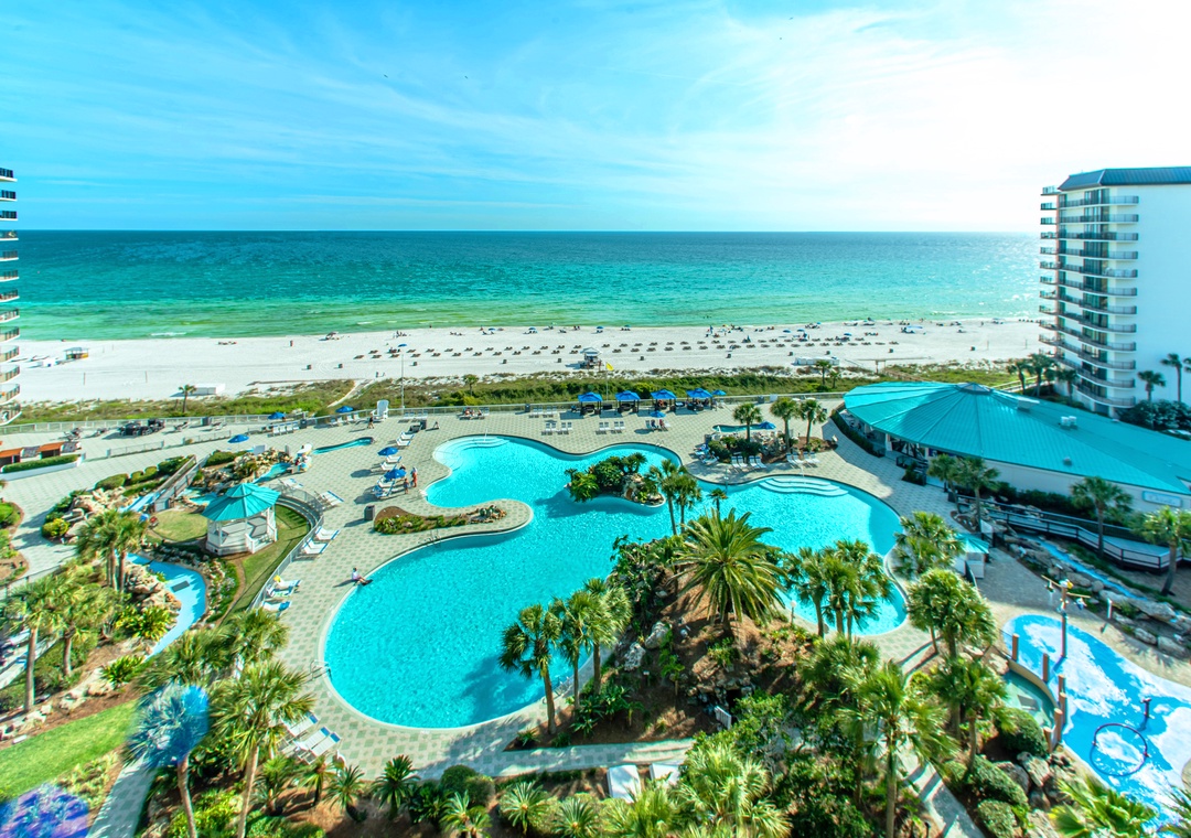 You won't want to leave Edgewater Beach and Golf Resort in Panama City Beach! The resort is so extensive that you won't ever have to leave once you arrive and golf cart shuttles are provided to take you where you would like. With half a mile of private beach, eleven pools, four hot tubs and a fabulous 11,500 sqft. Polynesian-style, free form lagoon pool with waterfalls and fiber optic lighting, you can lounge to your heart's content! Wander past the six reflecting pools to wind down your day. Beach service is available for a fee.