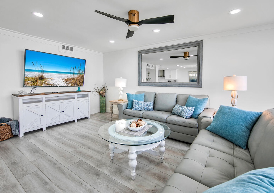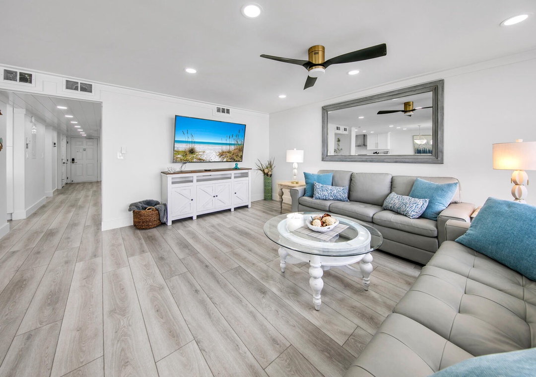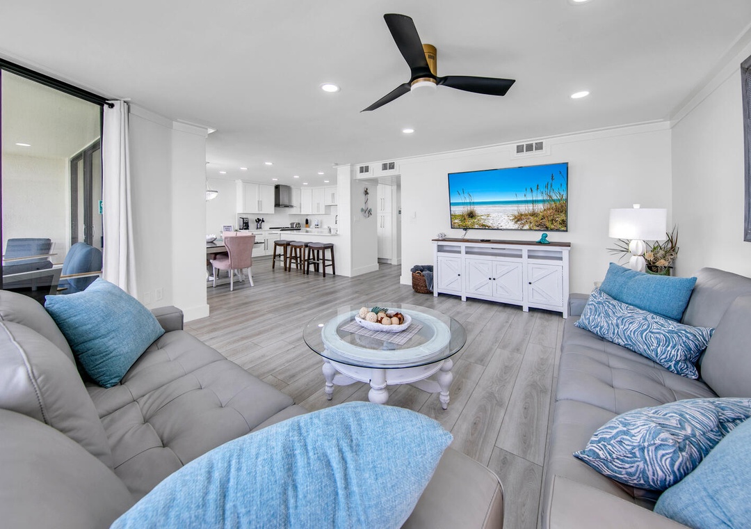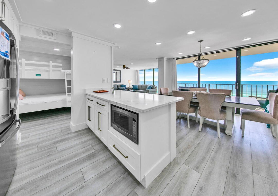 Beautifully renovated condo with incredible wall to wall views of beach. 2 bedrooms with a set of bunks outside that have tv’s built into nooks. Brand new appliances, washer/dryer for towels etc. Lovely quartz countertops in kitchen stocked with everything. (You do need to bring your basics for a longer stay - paper towels/toilet paper/hand soap). The master shower is excellent, everyone loved the tile work throughout. Lots of seating. Big tv. The resort has golf/heated pool/tennus/basketball etc. Loved it! ❤️❤️- Reviewed On: 3/20/2023