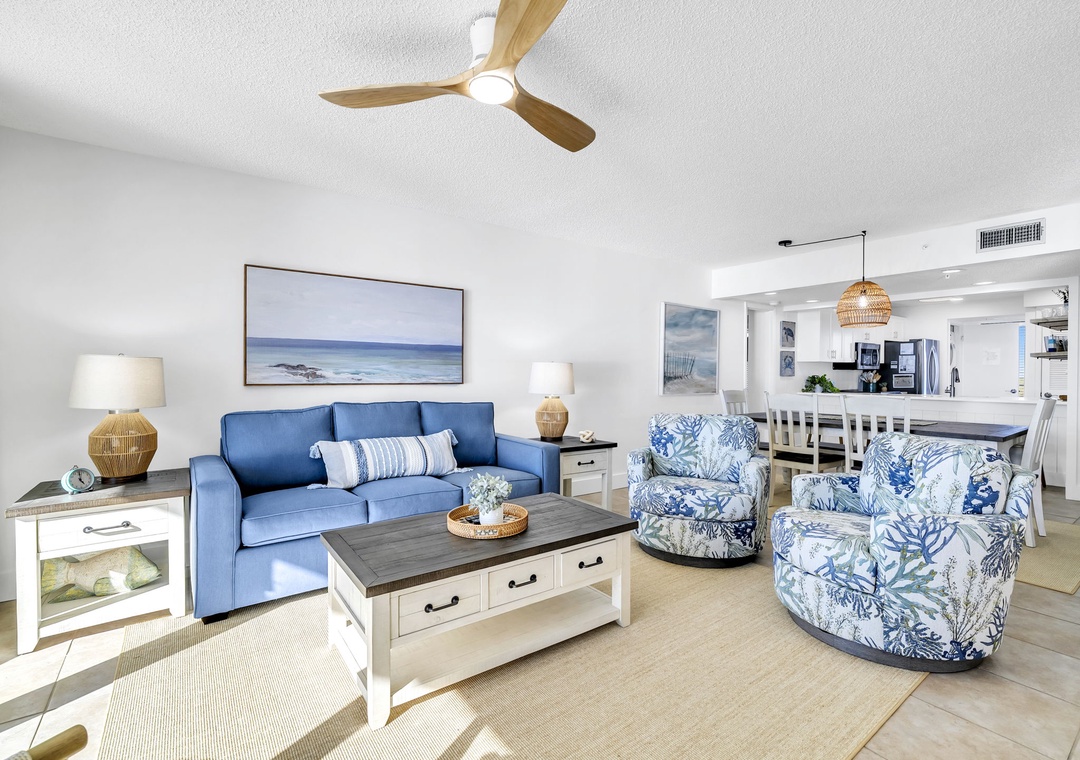 Edgewater Tower 3-1003 is a beautifully renovated 3-bedroom, 3-bathroom Gulf-front condo offering breathtaking views and unforgettable sunsets from its spacious 10th-floor balcony. Enjoy stunning beach vistas from the living room, kitchen, master bedroom, and, of course, right from your private balcony. This stylish unit comfortably sleeps up to 10 guests, featuring a king bed in the master suite, a queen bed in the first guest room, two queen beds in the second guest room, and a brand-new sleeper sofa in the living room. Whip up your favorite meals in the fully equipped kitchen, then savor your morning coffee while watching the waves roll in. Spend your days lounging by the beachfront lagoon pool, soaking in the sun, and enjoying all the amenities Edgewater Beach & Golf Resort has to offer. Come experience why the fun never ends at Edgewater Tower 3-1003 – your perfect beach getaway awaits!