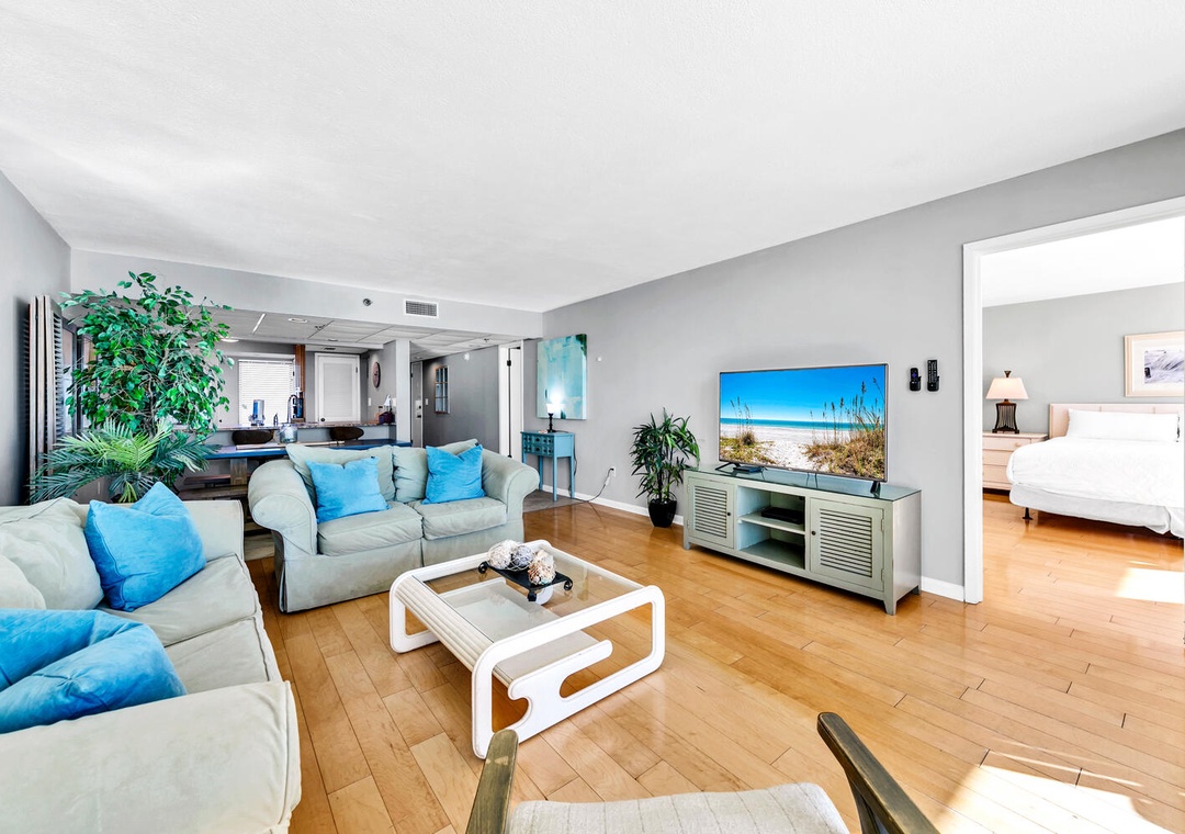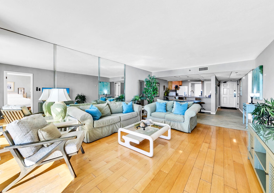 Welcome to Edgewater Tower 3-1104 a 1-bedroom 2-bath beachfront condo. Catch incredible sunsets over the water with a book or your favorite beverage from your private balcony. You will find a king bed in the master with an en suite bathroom, and balcony access, and the living room has a sleeper sofa. Prepare anything from your morning coffee to a delicious meal in the well-equipped kitchen. If you want to keep your fitness routine, the on-site gym will have everything you need. Take a dip in the beachfront lagoon pool and explore the endless activities at Edgewater Beach and Golf Resort! Indulge in the comfort and tranquility of Edgewater Tower 3-1104!