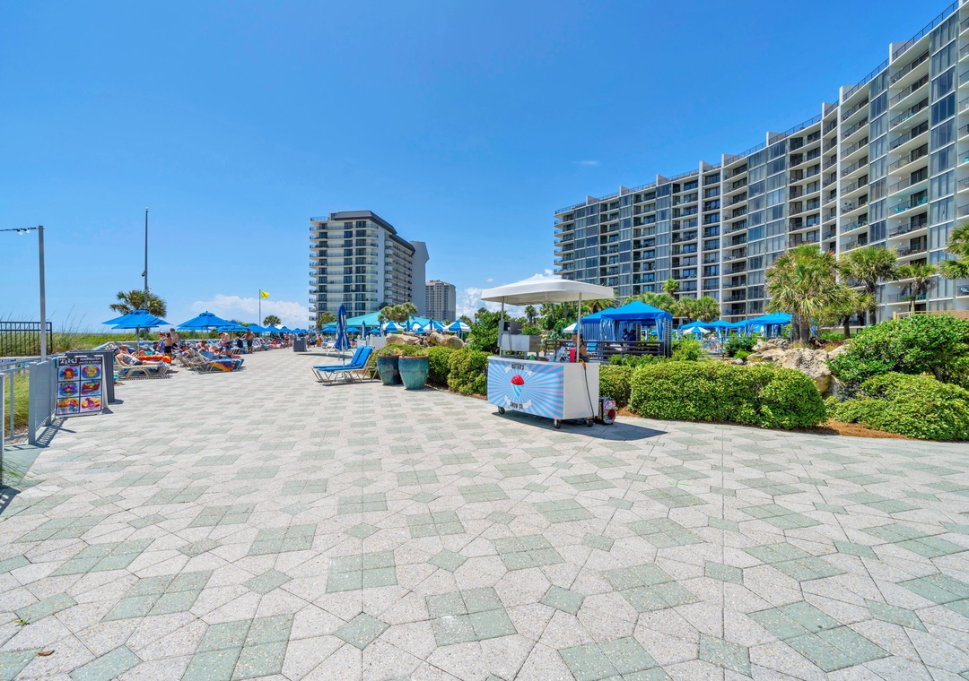 * Edgewater is a family friendly resort with a kids splash pad, “Flippers” arcade center, Edgie’s Market with various sundries including Starbucks coffee and ice cream, tiki airbrush shop, and summer fun activities such as: dive-in movie nights by the lagoon pool, beach bonfires, and a snow cone stand.