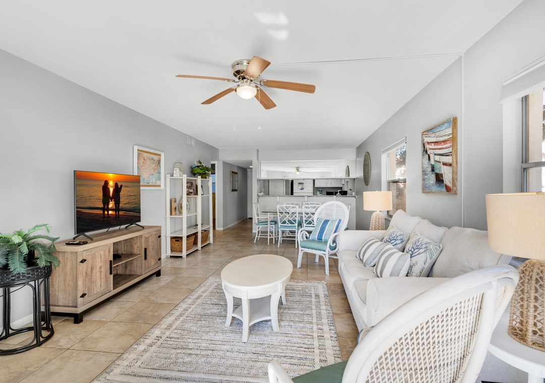 The El Matador complex is situated on the beach on gorgeous Okaloosa Island! This spacious 2BR/2BA condo offers a king in the master, queen bed in the guest room, and a queen sleeper sofa in the living room, sleeping up to 6 guests comfortably. Put your feet up and relax with a good movie after a long day at the beach in the beautiful living room. If you're looking for a fantastic place to unwind, this is it at Beachside Haven 210.