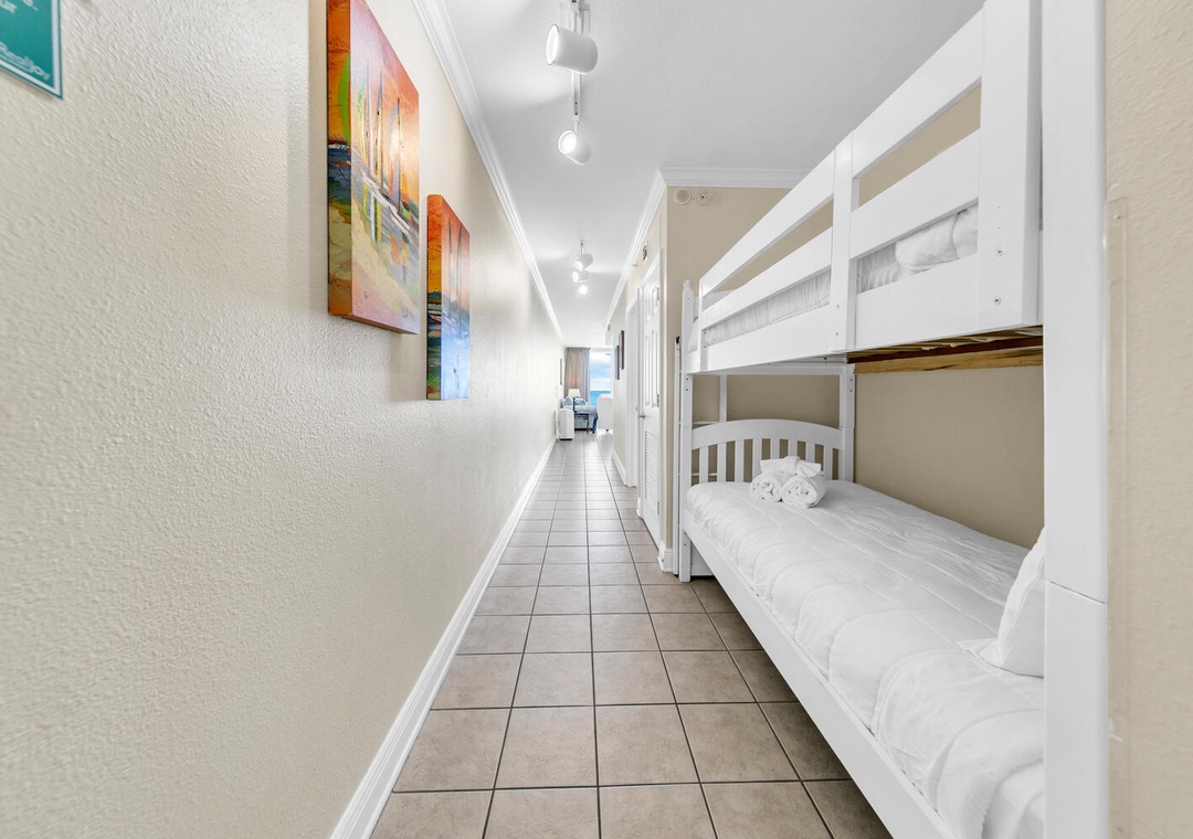 You won't need to look any further than Emerald Beach 1033! This lovely 1BR+bunks, 2BA condo with stunning gulf views is located at Emerald Beach Resort in Panama City Beach. This well-appointed condo offers sleeping accommodations for 4 with a king-size bed in the master and twin bunk beds in the hallway. The fully equipped kitchen has granite countertops and plenty of seating around the dining table or at the bar! Whether you are enjoying the Gulf views from your private balcony or splashing around in the Gulf Front pool, there is truly something for everyone! Find out why families come back year after year to Emerald Beach 1033!