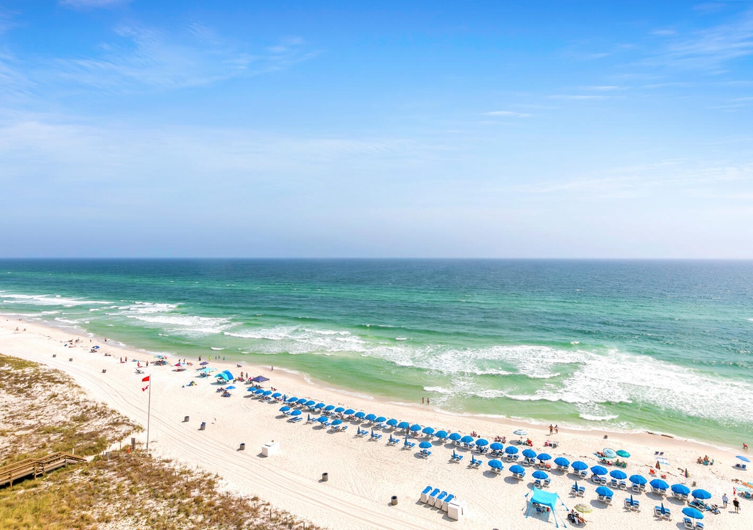 Built in 2007, it doesn’t get much better than Emerald Beach Resort! This modern, luxurious property boasts incredible views and offers a wonderful variety of amenities. Emerald Beach sits on 1000 feet of gulf-front property and is located centrally for easy access to all areas of the beach. On top of this resort being walking distance to Pier Park, the walkover from the north side of Front Beach Rd. to the beach side features the well-known Sky Bar. You also have 2 swimming pools, 2 hot tubs, a tiki bar, full service Starbucks, fitness center, and a 10,000 sqft convention center.