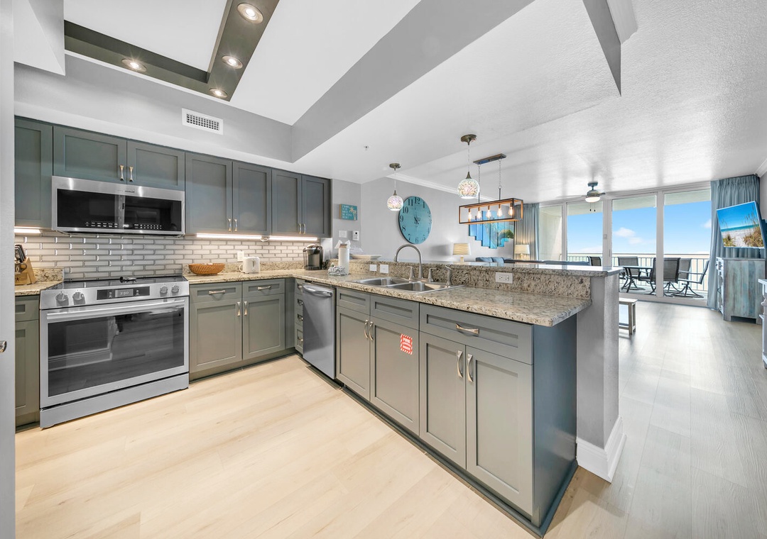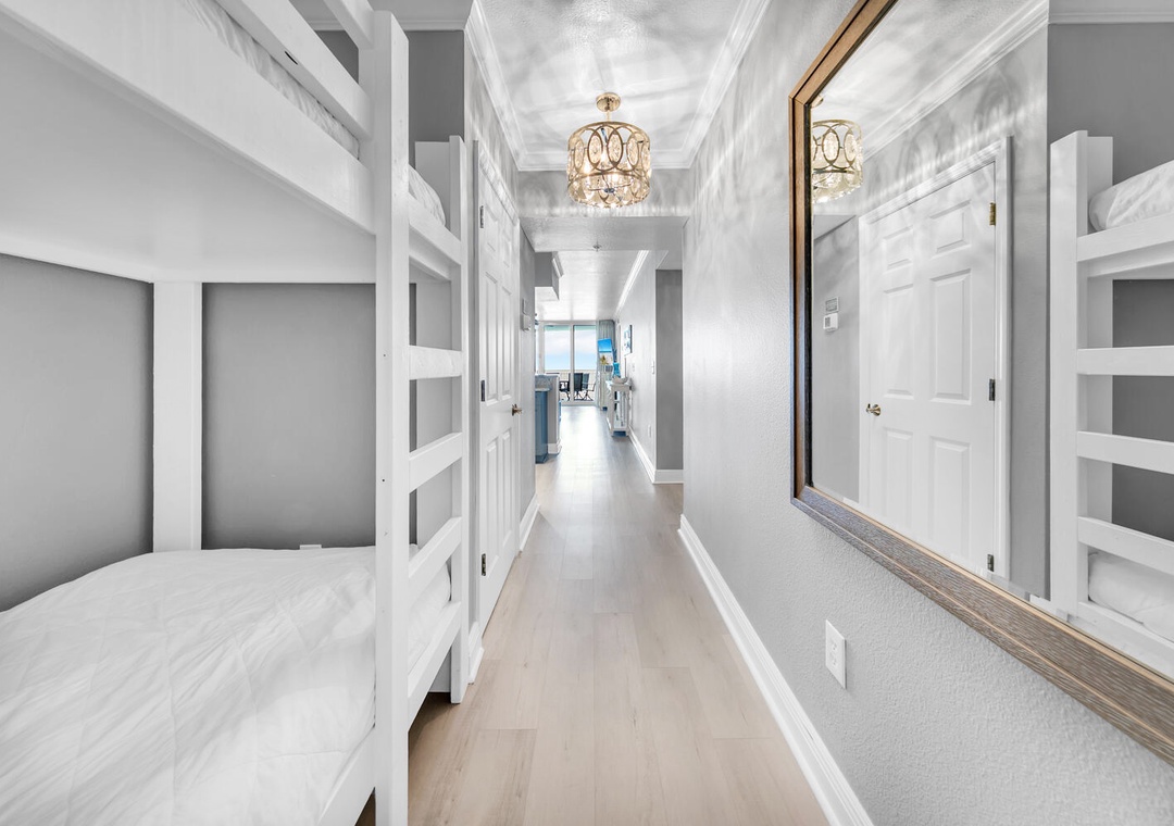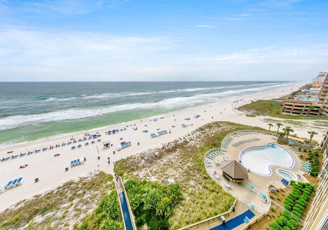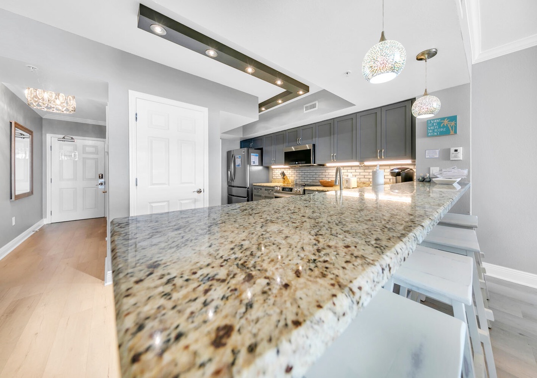 The location was perfect. Right on the beach with an amazing view. The condo was beautiful and homely. The rooms and bathrooms were spacious and comfortable. The bunks were bigger than I thought from the pics. The kitchen was huge and had all the utensils and pots/pans we needed to make a nice breakfast in the morning. Even more so a plus to have a table on the balcony to enjoy a meal while looking over the beach.