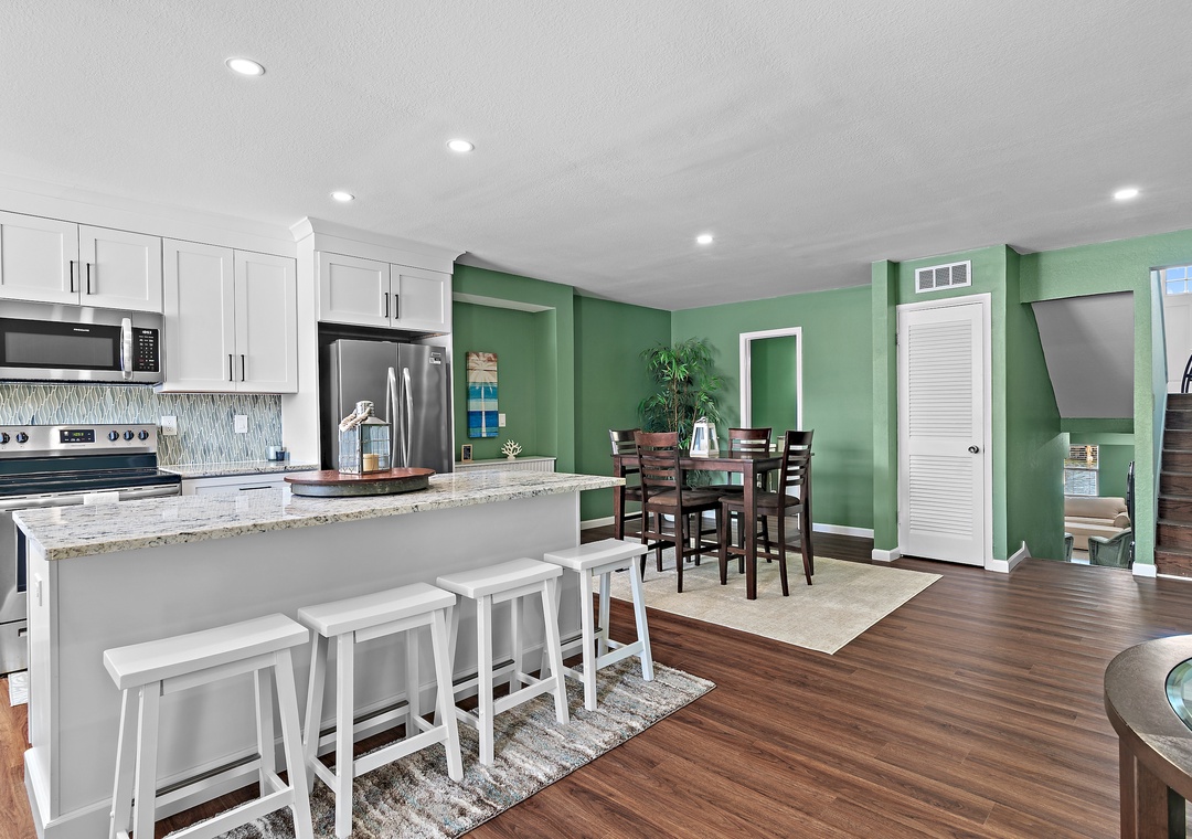 Welcome to your home away from home, Emerald Breeze. Enjoy a newly renovated kitchen in a 2-bedroom 2-bath with extra family room used for sleeping and living, in a 4-level split-level townhome that overlooks the canals leading into the Destin Harbor. There's another sleeper sofa in the main living room, for additional sleeping space. Prepare anything from your morning coffee to a delicious meal in your well-equipped kitchen and enjoy it at the dining table in the kitchen or out on the back porch by the water. Relax in the living room after a fun day in the sun with the family, watching a movie. Or sit out on the back porch watching the boats go by. Just a short walk to the Gulf side beaches, where you can enjoy a dip in the blue waters of the Gulf of Mexico. Come start making lasting memories at Emerald Breeze.