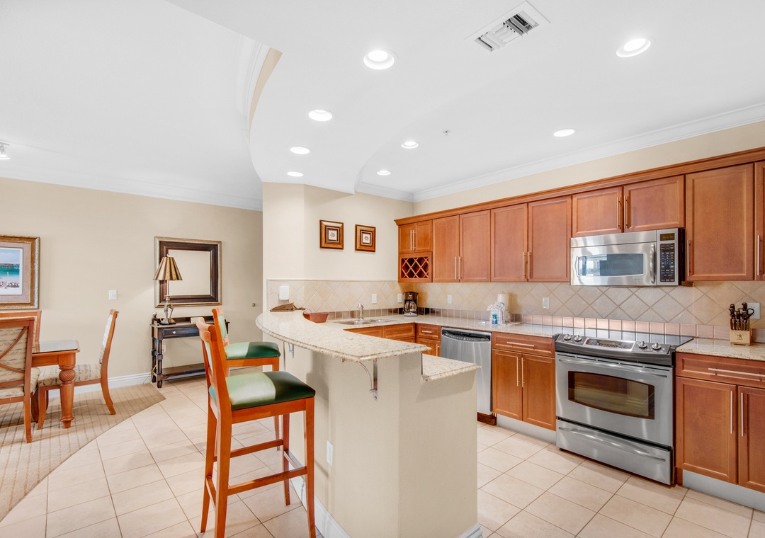 The kitchen has VERY limited supplies. We’ve stayed at MANY VRBO’s all with way more kitchen supplies then offered here. It’s basically a hotel. Zero seasonings, oil, cooking spray etc. not even coffee. Again basically a hotel. Great location and be sure to take the boat shuttle to the private brach. Very chill and low key- Reviewed On: 10/21/2024