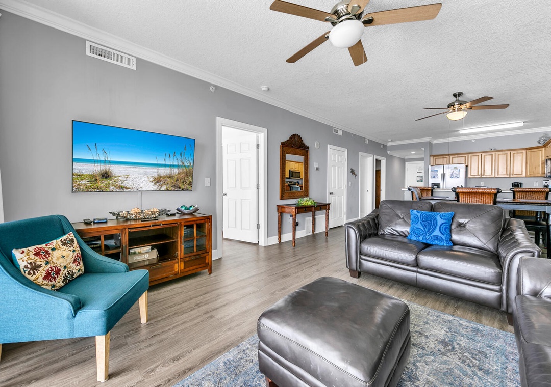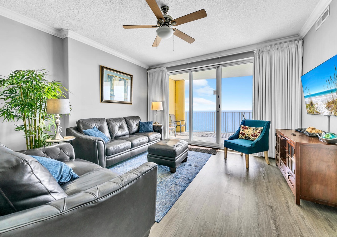 Welcome to your home away from home at Emerald Isle 2305 located on the top floor of Emerald Isle Resort with panoramic views. A 2-bedroom 2-bath condo that sleeps 6 guests. The living room is filled with natural light and spectacular gulf views, making it the perfect place to relax and unwind. Prepare anything from your morning coffee to a delicious meal in your well-equipped kitchen. Gaze across the endless gulf shoreline from your private balcony with your loved ones. You will find a king in the master, a queen in the guest bedroom, and a sleeper sofa in the living room. Come see why Emerald Isle 2305 is a perfect vacation spot.
