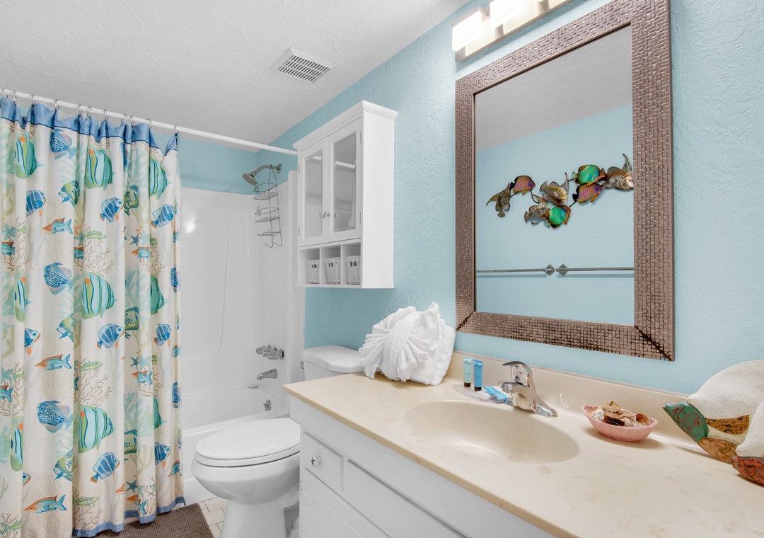 Great location, be advised your view of the beach overlooks the parking lot as well. This unit has a t.v in each room, books for adults & children, as well as games/puzzles. It also has plenty of furniture to store your personal belongings & hooks for hanging clothes/towels.- Reviewed On: 8/27/2023