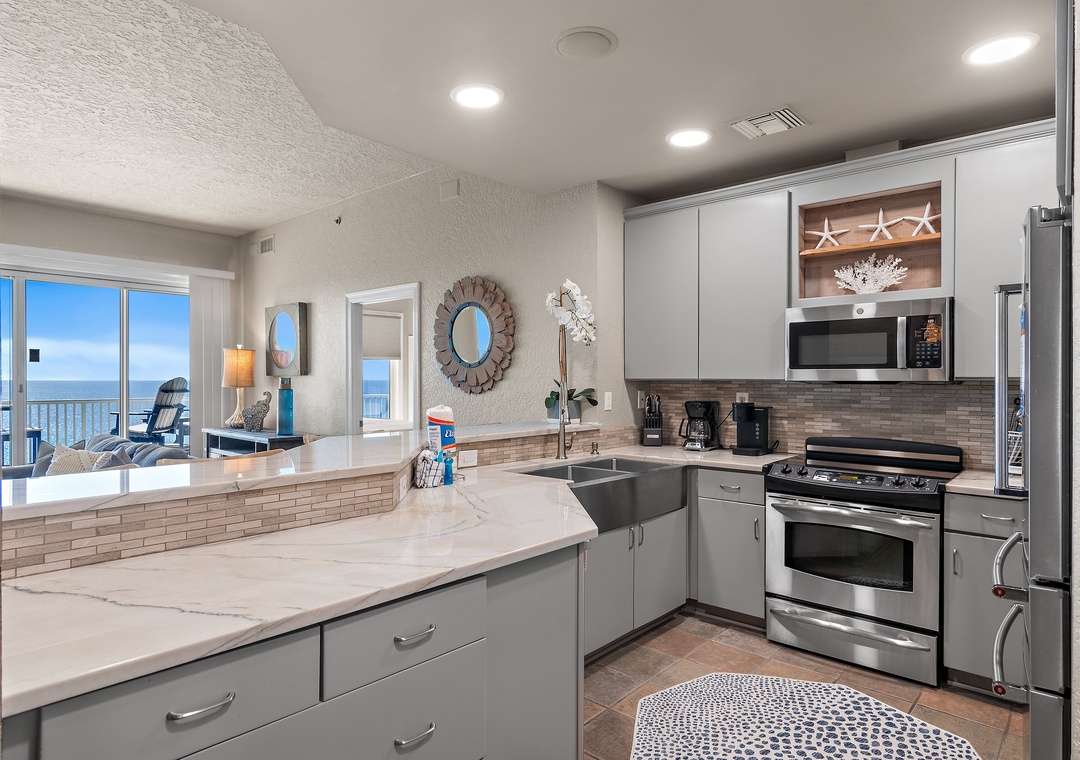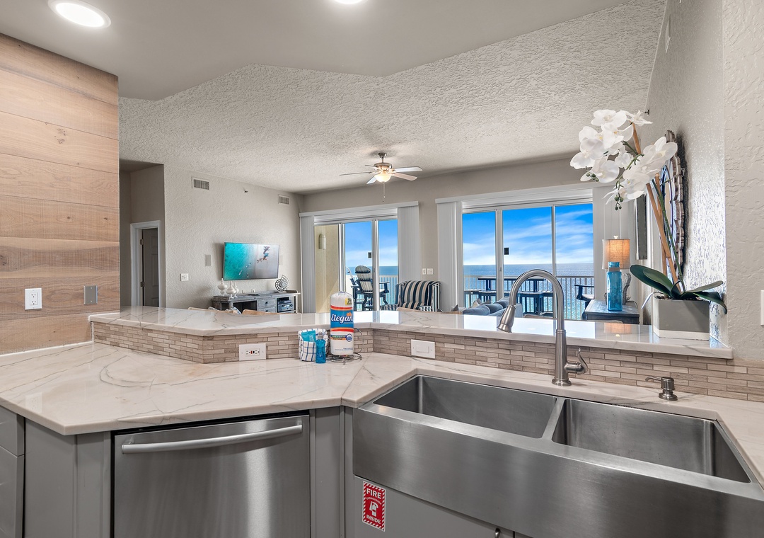 We loved this property! The location was perfect for flip flopping from the beach to the pool. The ice maker was key! Made it so easy to pack our coolers! The views from both sides of the unit were beautiful! We would stay here again! The unit lacked enough garbage bags, lighter for the outdoor grill, dish soap, toilet paper, sponge & dishwasher detergent to accommodate our group, but we were able to grab additional items at the Winn Dixie down the street. We are happy we chose this location! Made our trip very easy!- Reviewed On: 4/17/2022