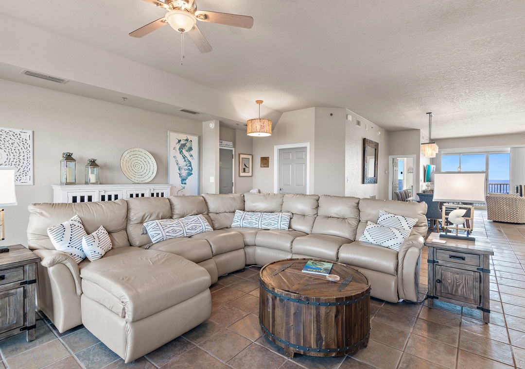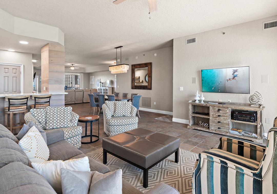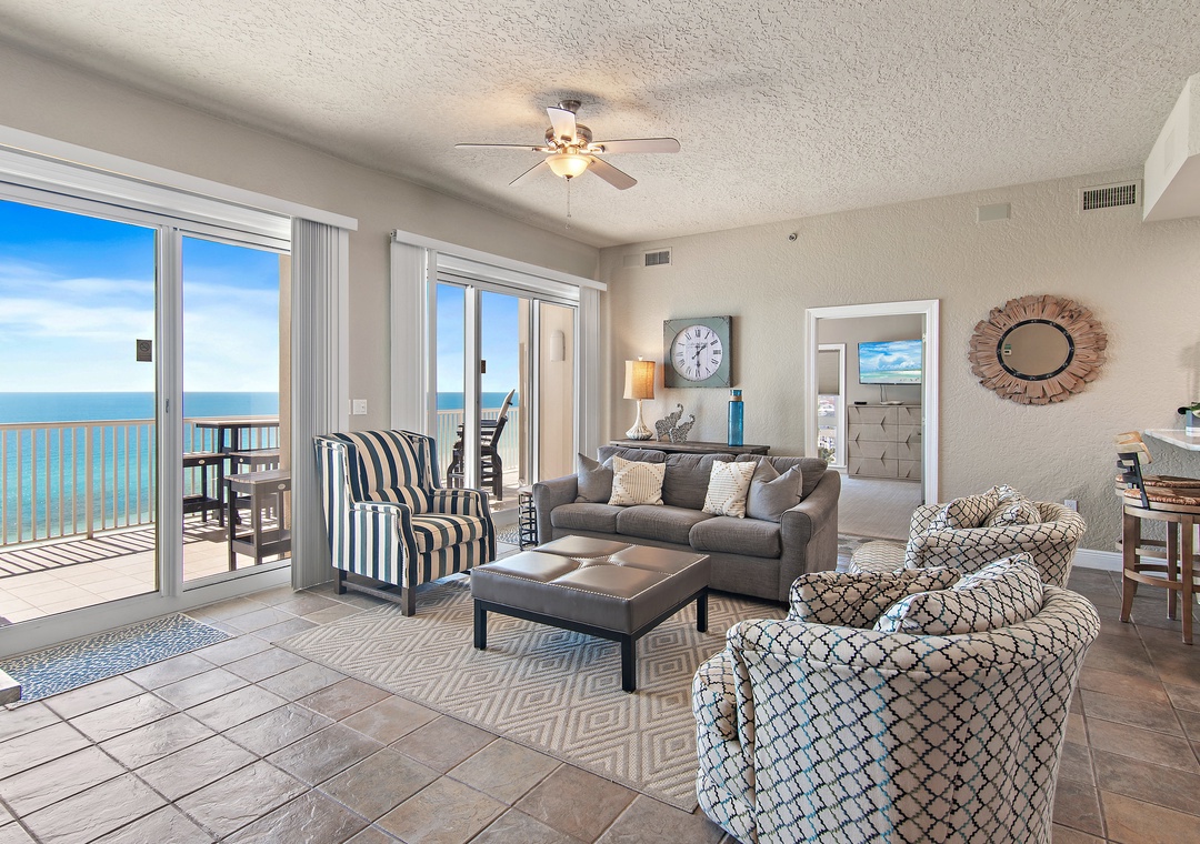 We stayed here for fall break, and we loved it! We would definitely return to the same property. The check in process was a little frustrating because they kept telling us to check in even though no one was available to check in with on the weekend, but Real Joy was great to work with and very responsive. The location of this condo is AWESOME, right across the street from the ocean! The pictures don't do the view justice! You basically have a 180 degree view of the ocean from the balcony, up on the 11th floor it feels like you can see out forever! This condo is extremely spacious with 2 family room areas and 3 big bedrooms with full bathrooms attached to each. There is an ice maker in the condo, which was super convenient for packing a cooler for the beach. We had plenty of dishes and silverware for simple breakfasts and lunches. There was lots of closet and drawer storage in the bedrooms, and the bathrooms had ample cabinet space so you can unpack and not feel like you need to live out of suitcases and baggies! We loved this property and will definitely see if it's available next time we come to Miramar Beach!- Reviewed On: 10/25/2022