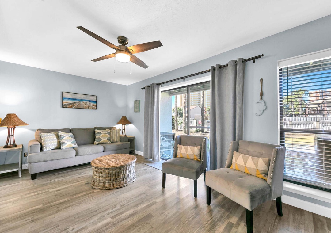 Welcome to Endless Summer D5, a charming 1BR/1BA condo located on the west end of Panama City Beach, just across the street from the pristine, sugar-white sands and sparkling Gulf waters. This cozy condo features a queen bed, twin over twin bunks in the bedroom, and a sleeper sofa in the living room, comfortably accommodating up to 4 guests. The fully equipped kitchen is perfect for preparing your favorite meals. Step outside to your private ground-floor patio, ideal for enjoying a morning coffee, and just steps away from the pool. Take a short stroll to the beach, relax by one of the two pools, and explore Pier Park, only 2 miles away! Discover why families return to Endless Summer D5 year after year!
