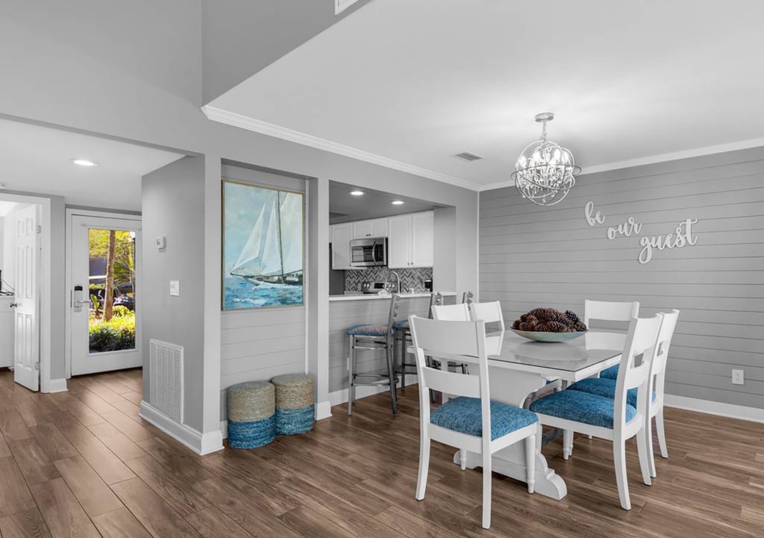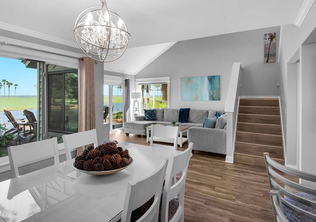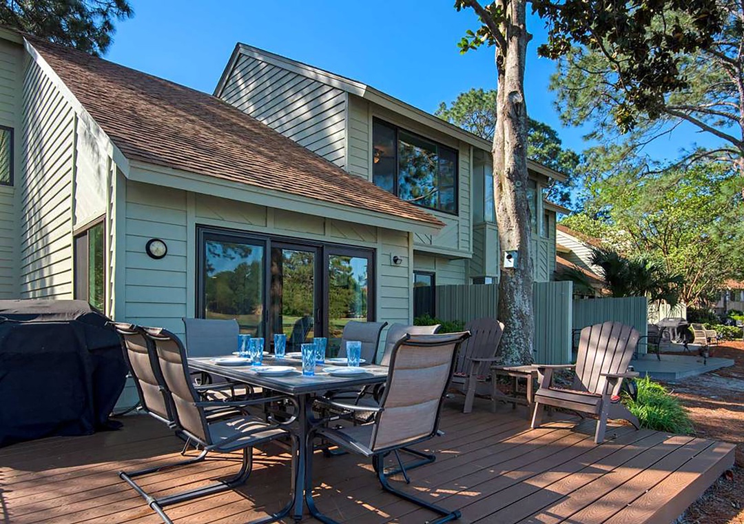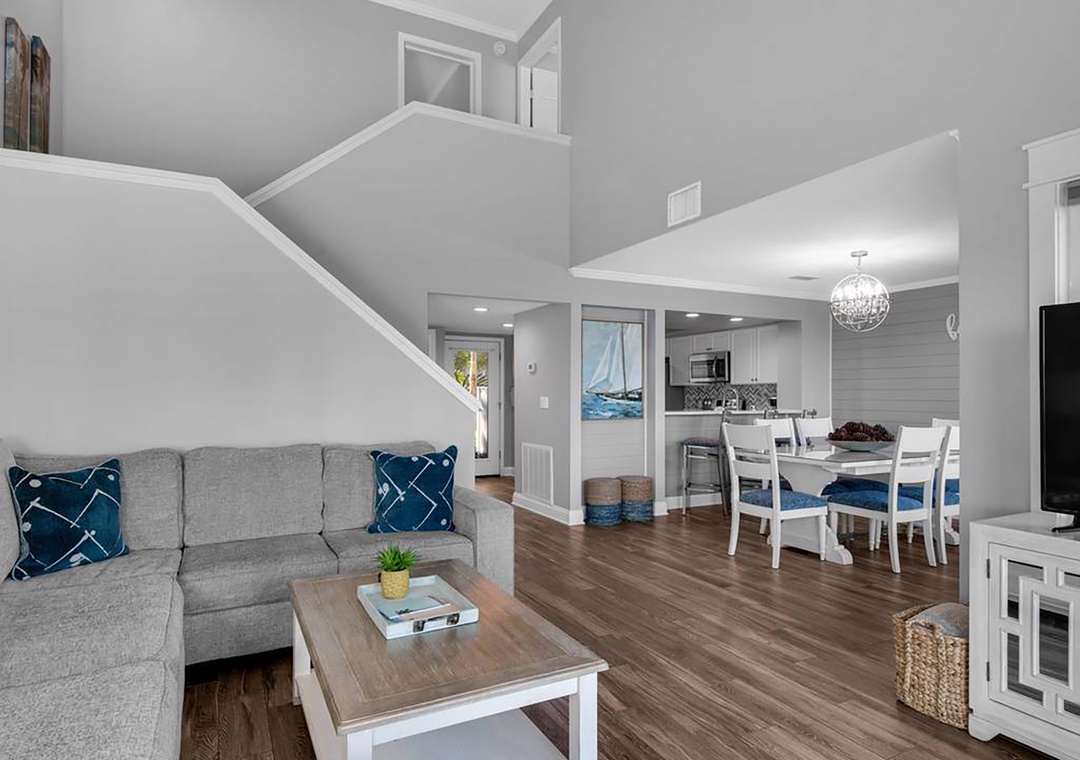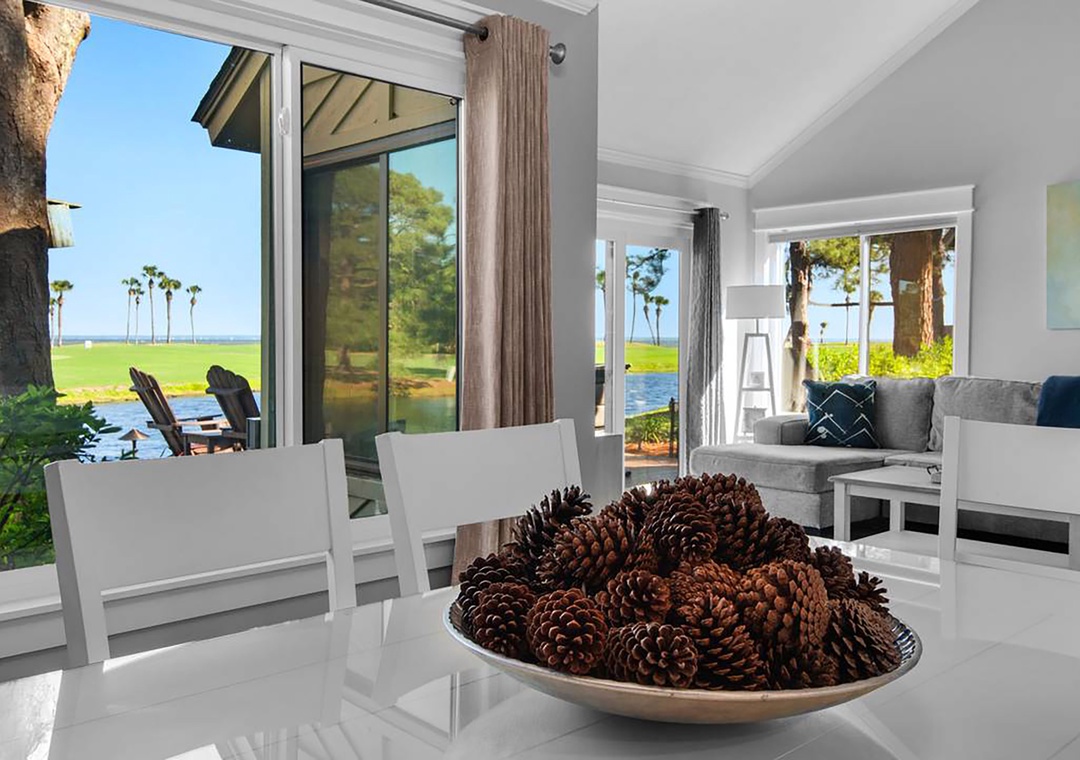 Welcome to Sea Ya Later—where waterfront living meets laid-back coastal charm. This dog-friendly end unit, located in Sandestin Golf and Beach Resort, offers breathtaking bayfront views and the perfect setting for a relaxing getaway. With three bedrooms and two bathrooms, this spacious retreat comfortably accommodates up to eight guests. Start your mornings on the expansive deck, coffee in hand, as you take in the serene waterfront scenery. Spend your days exploring the resort’s scenic trails, boutique shops, and local cafés—easily accessible by the included golf cart or tram. In the evening, return to unwind with outdoor dining on the deck as the sun sets over the bay. Inside, you’ll find a thoughtfully designed layout with a king master suite on the second floor, a second king bedroom on the first floor, and a guest room with two twin beds and twin trundles—perfect for families or groups. The fully equipped kitchen includes everything you need, from a Keurig to a microwave and full-size refrigerator, making meal prep simple and enjoyable. Gather around the dining table, featuring seating for six and additional barstool seating, all set against a stunning sunset backdrop, or fire up the gas grill for a casual barbecue night. End your evenings in the cozy living room, ideal for movie nights and quality time together. Whether you're here for adventure or relaxation, Sea Ya Later promises a memorable waterfront to escape you'll want to return to again and again.