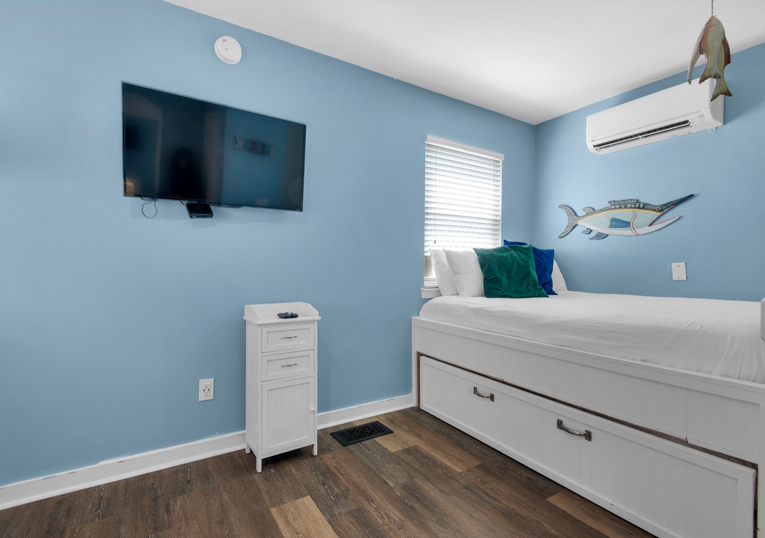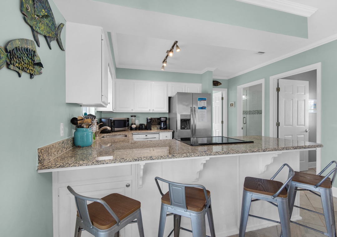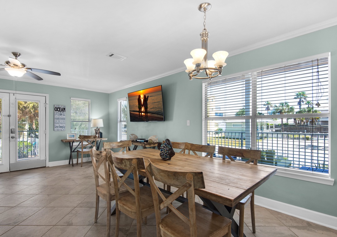 The bedrooms are spaced out perfectly throughout the home. The first floor includes a queen bedroom with private bathroom. On the second floor, you’ll find the king master suite with balcony access and en suite bathroom, plus an additional king bedroom on this level. The third-floor loft has 2 full over full bunk beds with a full trundle underneath both and one separate full of a full trundle underneath, a great spot for the little ones. With beach access minutes away, your own private pool, and prime location in Crystal Beach, this home has it ALL! Don’t miss the opportunity to create vacation memories of a lifetime at Family DESTINation!
