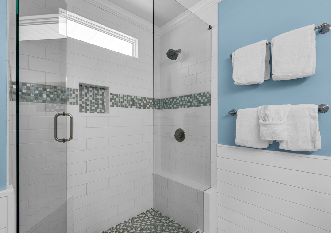 My family stayed at this house and really enjoyed our time there. House was clean, well stocked and beds were comfortable. We enjoyed the wrap around deck on the first and second floor and the kids room on the third floor. Best part was beach access; 6 houses down from house. We used a wagon for our beach gear. Pool in backyard is fabulous, no need to share with other families. There is a hose with access to cold water to cool down the pool. There is also a shower built on to side of house near mud room entrance. Would stay again.- Reviewed On: 8/6/2024