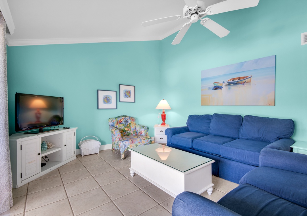 Welcome to Fish Out of Water, a 2BR/2BA condo located in the Golf Villas at Seascape Resort! With easy parking, a golf course, a pool, and tennis courts right out your back door, you can’t help but want to take a break and relax on the deck. Whether enjoying your morning coffee or taking a short stroll to the boardwalk or readying for a relaxing day on the beach, when you stay in this unit you will want to come back again and again. This vibrant, updated unit also boasts new appliances in the kitchen and new living room furniture. Sleeping accommodations include a king master suite, a guest bedroom with a queen bed, and a queen sleeper sofa in the living room, sleeping 6 guests comfortably. Enjoy Seascape's 2000ft of beach access (about 900 yards), watch the golfers from your balcony, or take a stroll to the Seascape Towne Center right across the golf course! Come see why Fish Out of Water is the best place to vacation!