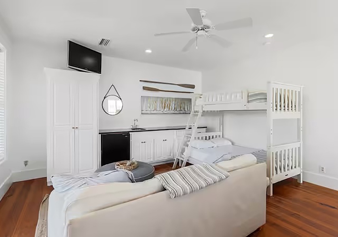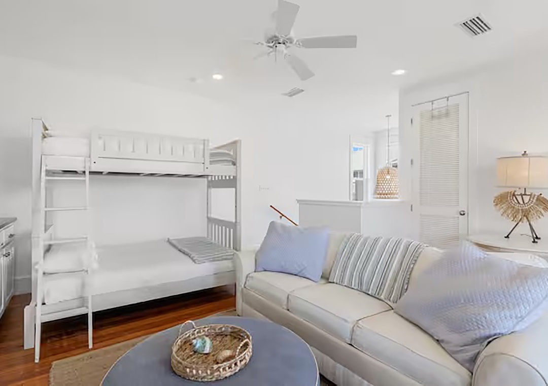3rd Floor: Twin-over-Full bunk room with sleeper sofa and en-suite bath