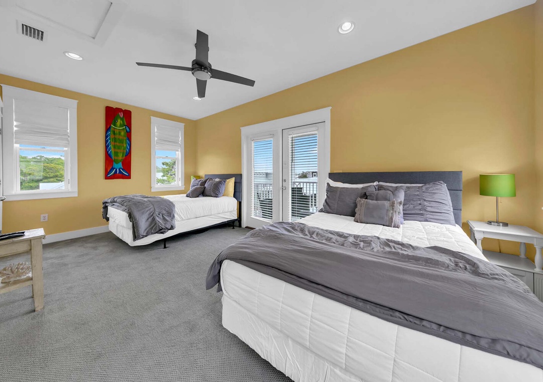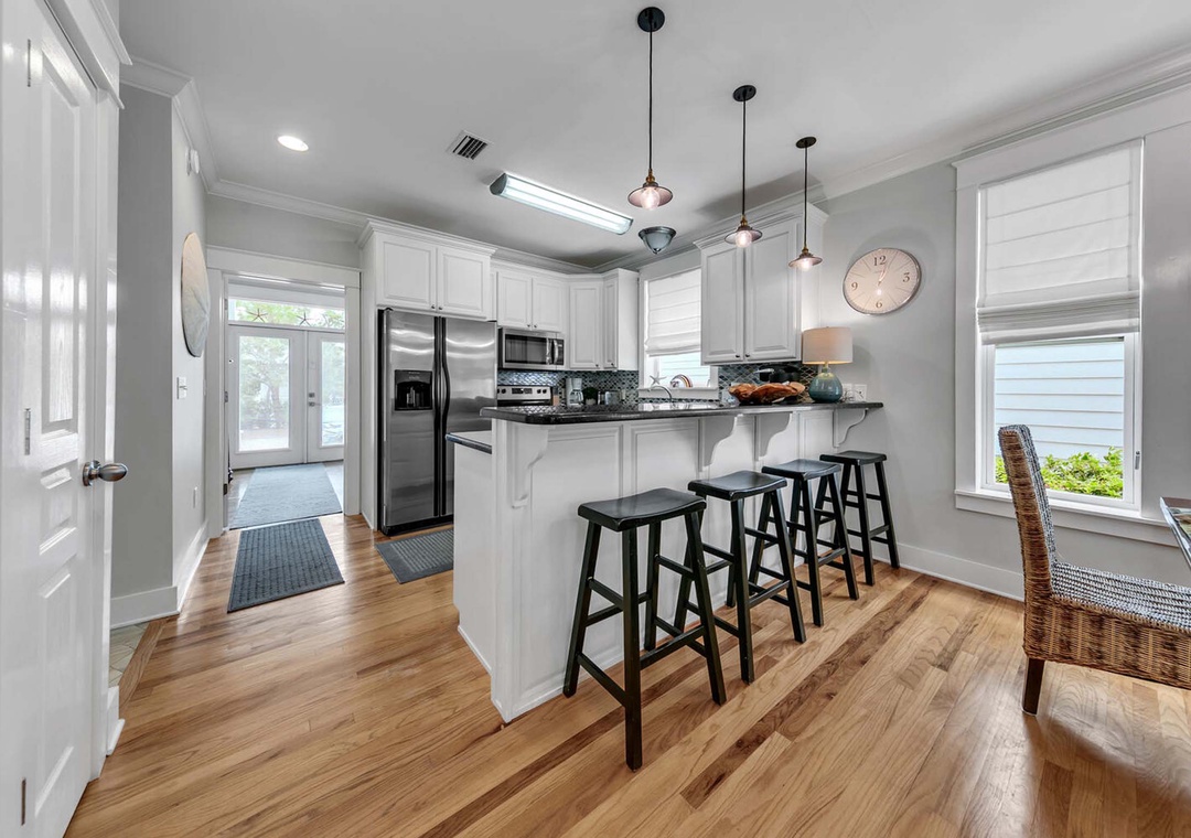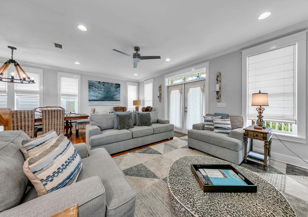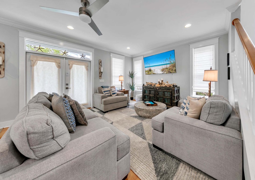 Welcome to Floridays on 30A, your perfect home away from home! This gorgeous 4-bedroom, 4-bathroom beach house is located in the desirable Seacrest Beach community along 30A. The open-concept design of the living, dining, and kitchen areas creates a welcoming, airy space to kick off your vacation. With three spacious levels, there’s plenty of room for relaxation and creating lasting memories with family and friends. The fully equipped kitchen is a dream for any chef, perfect for preparing delicious meals. On the first floor, you’ll find a cozy King bedroom. The second-floor master suite offers a king-sized bed, a private bath, and access to a balcony. Also on the second floor is a guest bedroom with two sets of twin/full bunk beds—ideal for the kids—complete with a private bath and a large TV for entertainment. On the third floor, you will find a third guest bedroom that features two full beds. As an added feature, you will also find a fabulous wet bar and a stunning observation deck on the third floor—an amazing spot to soak in the Florida sunshine, fresh air, and breathtaking 30A sunsets. With accommodations for up to 12 guests, Floridays on 30A is the perfect place for your next unforgettable getaway!