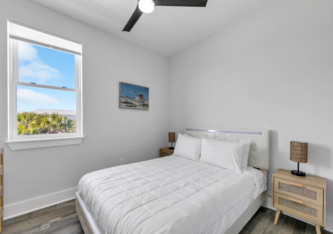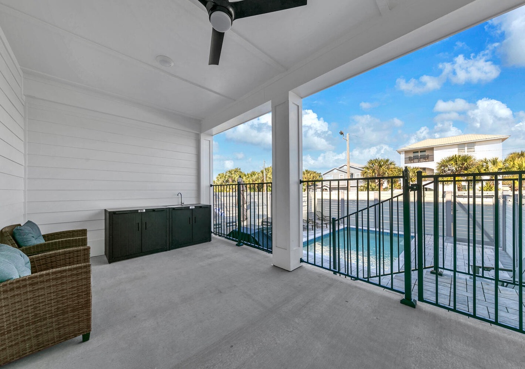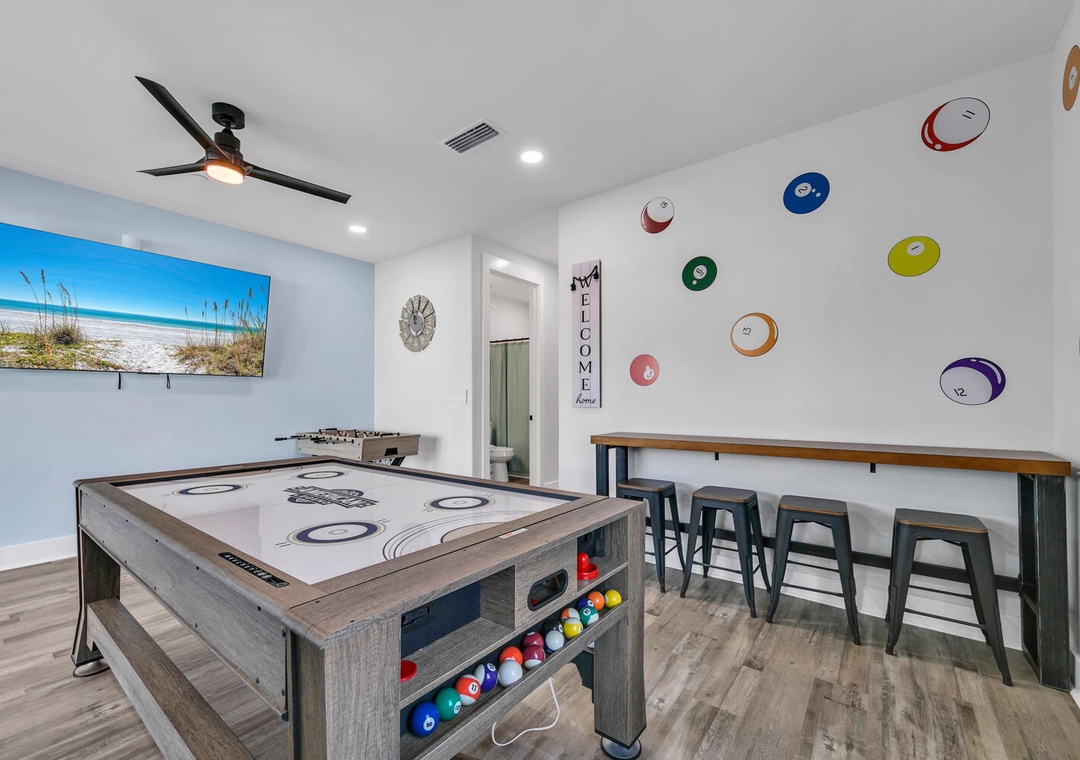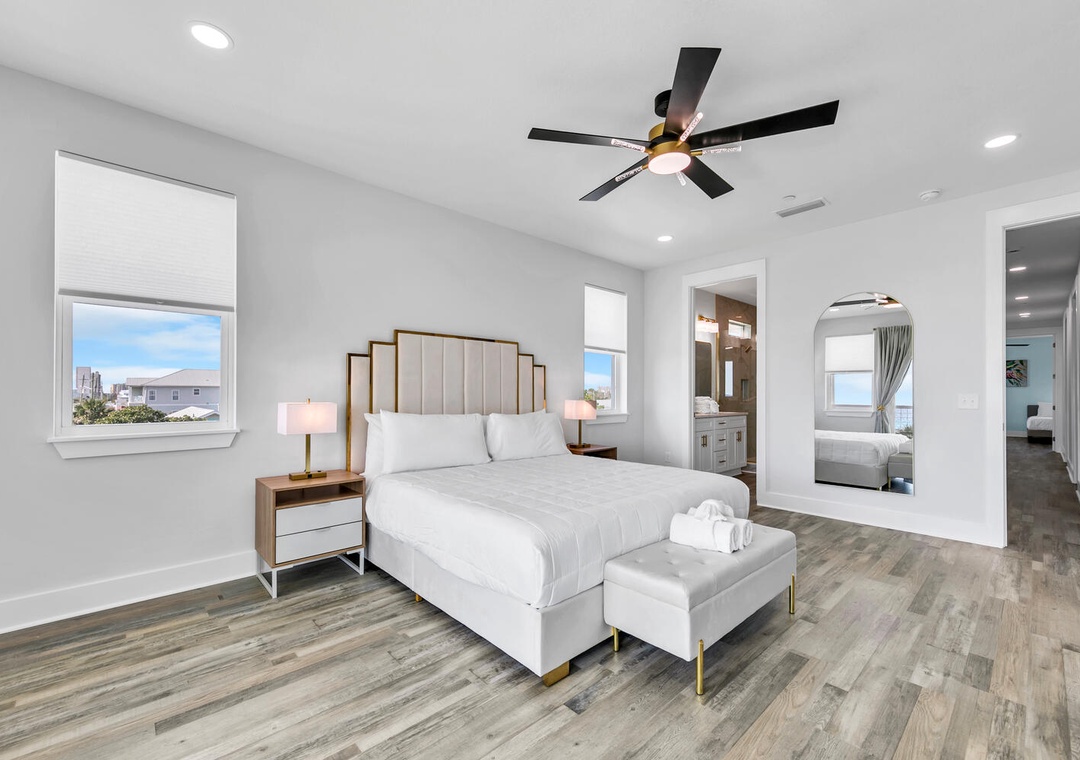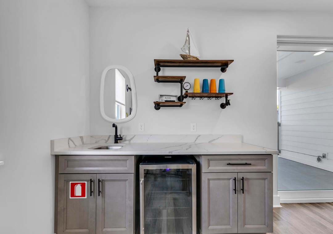 The first floor offers a large gathering space with a Game table that includes pool, ping pong, and air hockey and a Foosball table for hours of fun that also conveniently allows access to the back patio and the private pool. The first floor also includes a queen bedroom and en suite, another full bathroom, an office workspace and the first of two laundry rooms. The second floor offers the large open kitchen, living and dining area for family dinners, balcony to enjoy morning coffee or evening sunset watching. There is also a guest bedroom with a queen bed and another guest bedroom with two queen beds, as well as one full bath and one-half bath. The third floor brings you to the beautiful cozy King master with a private ensuite with exquisite high-end finishes and a private balcony overlooking the emerald green water of the Gulf! Further down the hall on this floor is a Wet Bar area with a wine cooler, a second laundry room and two more bedrooms - One bedroom with a Twin over king bunk and one with two more queen beds, and another full bathroom. In total, this unit can comfortably sleep up to 17 guests.