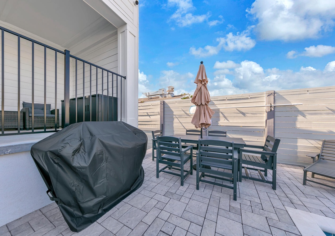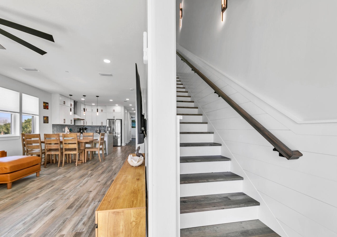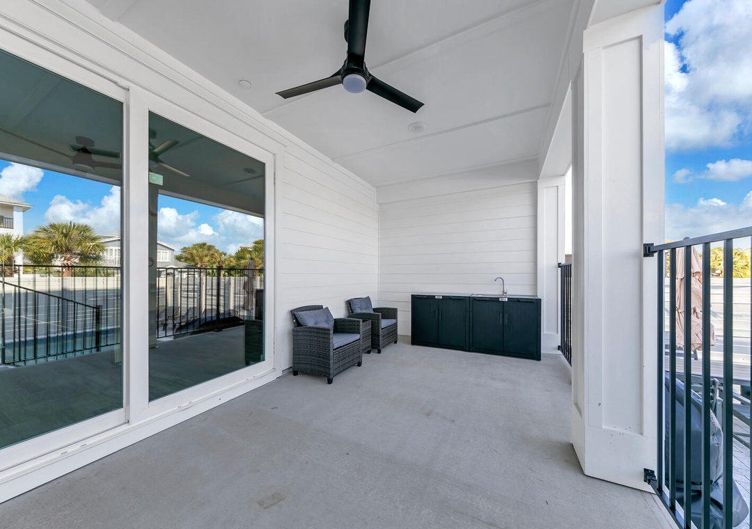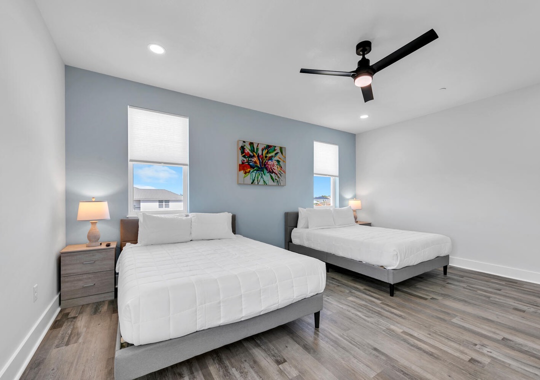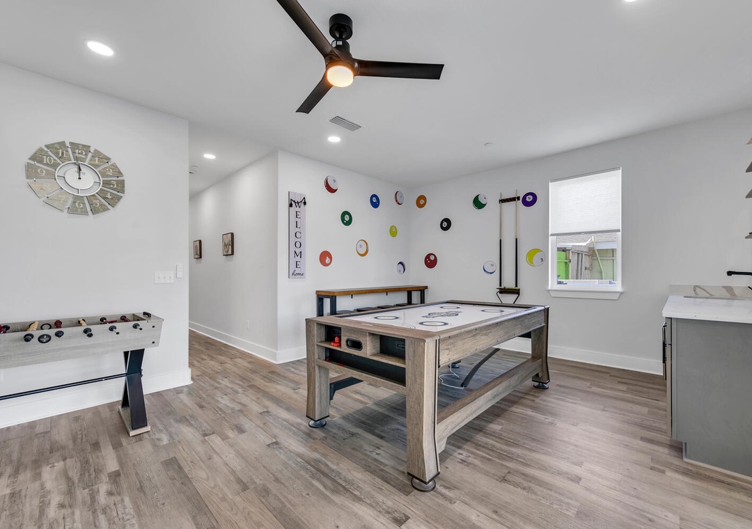 The first floor offers a large gathering space with a Game table that includes pool, ping pong, and air hockey and a Foosball table for hours of fun that also conveniently allows access to the back patio and the private pool. The first floor also includes a queen bedroom and en suite, another full bathroom, an office workspace and the first of two laundry rooms. The second floor offers the large open kitchen, living and dining area for family dinners, balcony to enjoy morning coffee or evening sunset watching. There is also a guest bedroom with a queen bed and another guest bedroom with two queen beds, as well as one full bath and one-half bath. The third floor brings you to the beautiful cozy King master with a private ensuite with exquisite high-end finishes and a private balcony overlooking the emerald green water of the Gulf! Further down the hall on this floor is a Wet Bar area with a wine cooler, a second laundry room and two more bedrooms - One bedroom with a Twin over king bunk and one with two more queen beds, and another full bathroom. In total, this unit can comfortably sleep up to 17 guests.
