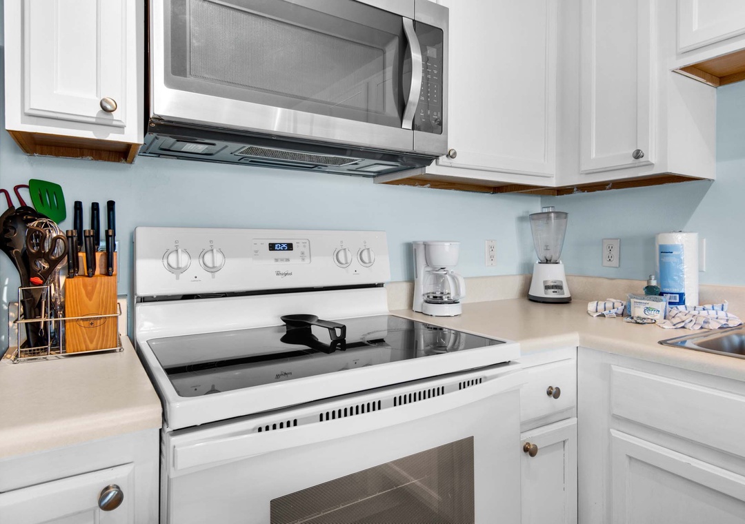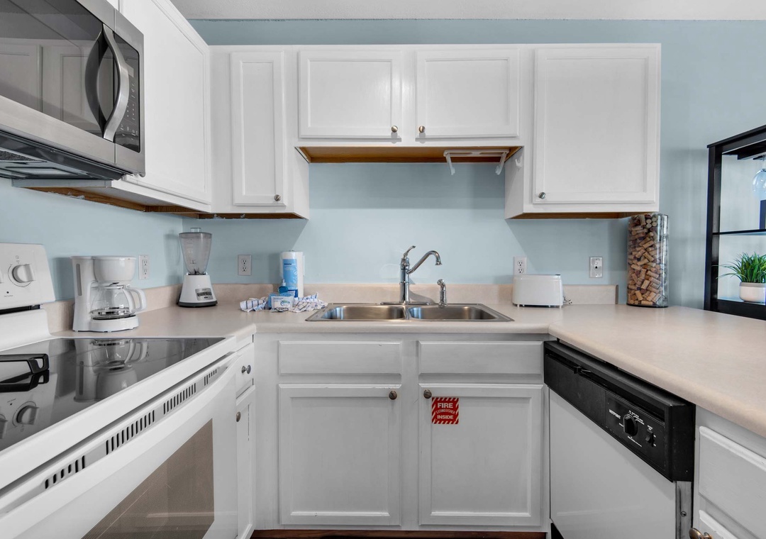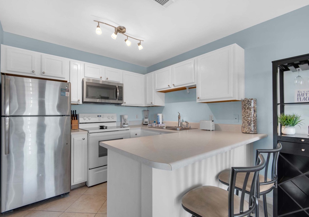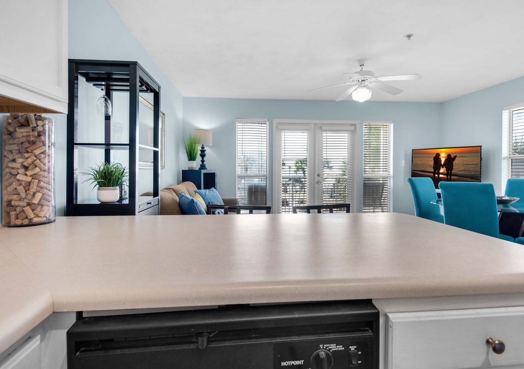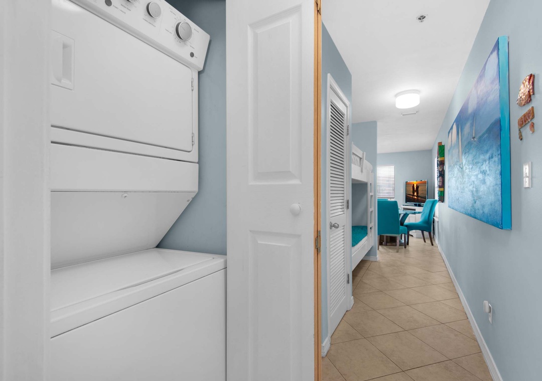 Welcome to Grand Caribbean West 215, a charming 1-bedroom, 1-bath condo. Start your day with a cup of coffee on your private end-unit balcony, where you can soak in pretty Gulf views. The fully equipped kitchen makes meal prep a breeze, while the master bedroom features a cozy king bed and twin bunk beds in the hallway, comfortably sleeping 4 guests. With the added convenience of a private washer and dryer, you can pack light and always have fresh clothes. Experience the endless fun at Grand Caribbean West 215!