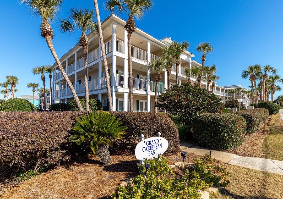 Grand Caribbean East and West feature terrific heated pools, hot tubs, BBQ grilling areas, outdoor showers, and picnic spaces in Crystal Beach, Destin, Florida. Private, deeded beach access is directly across the street -- less than a minute's walk from the vacation rentals in these buildings. The complex is also just a few minute's drive from all Destin has to offer, including go-kart rentals, dolphin cruises, charter fishing, parasailing, Big Kahuna's Water Park, The Track Family Fun Center, and the Silver Sands Outlet Mall.