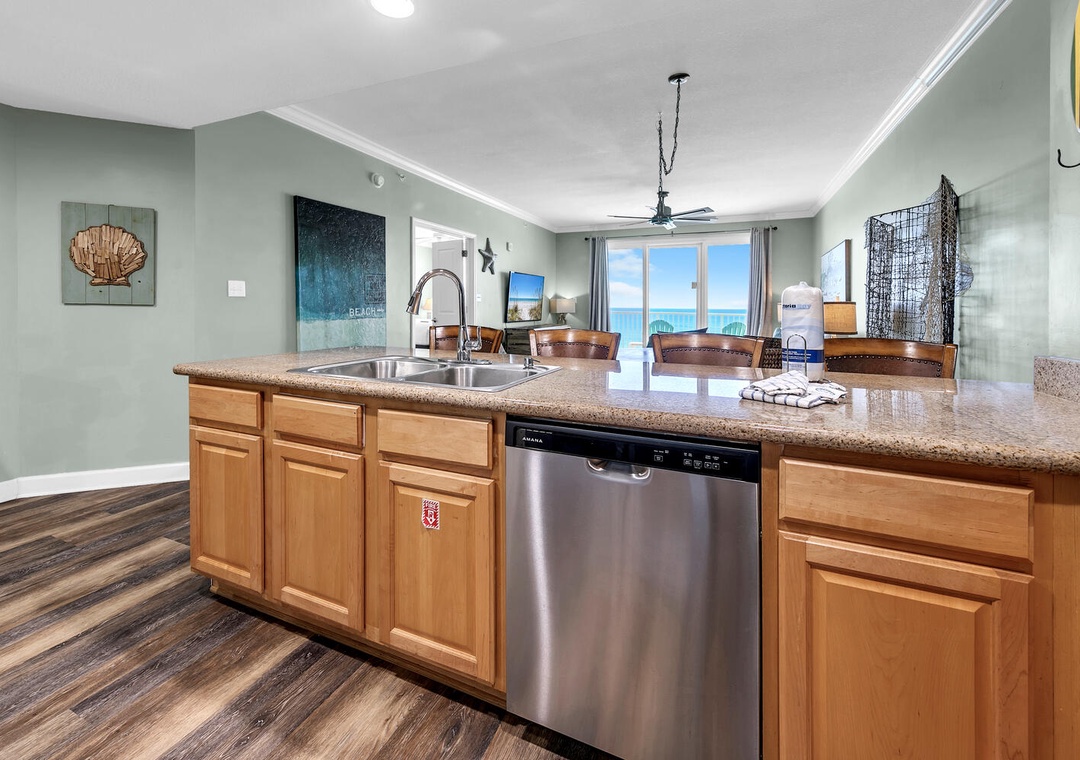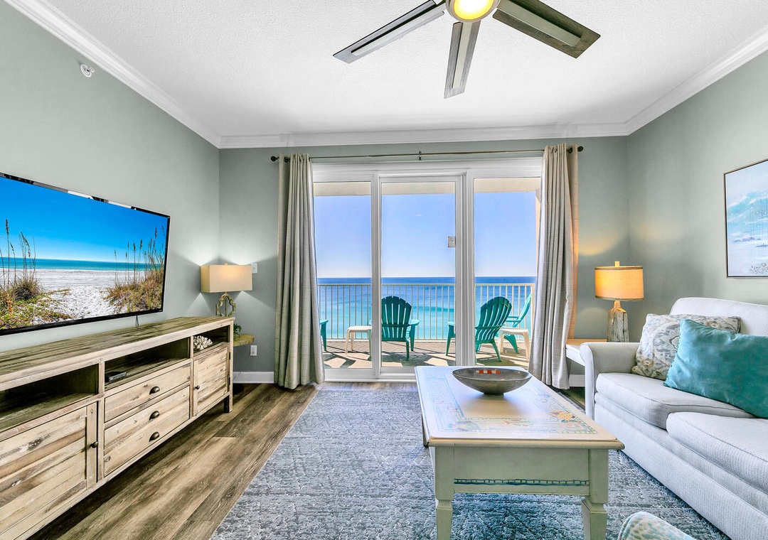 Welcome to Grandview East 1002, a beautifully decorated 3-bedroom, 2-bathroom condo with a soothing ocean-inspired theme, perfect for a family-friendly beach retreat. From your 10th-floor private beachfront balcony, enjoy breathtaking views of the Gulf or spend quality time unwinding with loved ones. The well-equipped kitchen makes it easy to prepare delicious meals, while the private washer and dryer handle your swimsuits and towels after a day on the beach. The sleeping arrangements include a king bed in the master bedroom, a queen bed in guest bedroom 1, two full beds in guest bedroom 2, and a sleeper sofa in the living room, comfortably accommodating up to 8 guests. Come and experience why the fun never ends at Grandview East 1002!