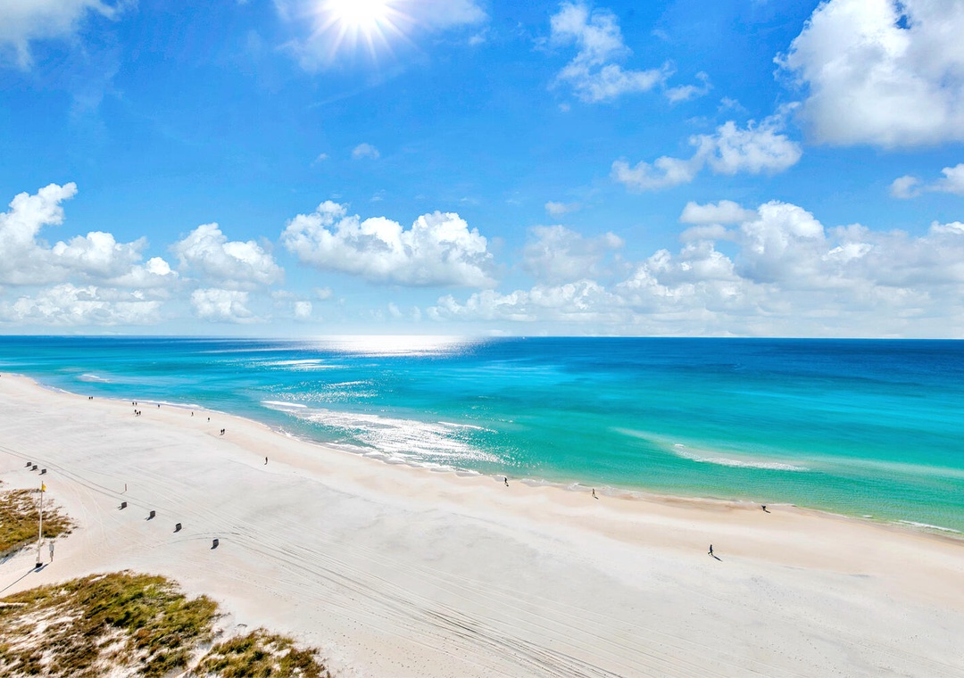 Grandview East is a fabulous 17-story boutique complex with just over 60 units in the entire building, which means an uncrowded beach for you! Each unit includes 2 parking passes to the complex's nearby lot! Amenities include a Gulf Front pool, fitness center, and easy beach access. You can relax in your comfortable room or spend time on the beach soaking up the natural beauty. Grandview East has also provided a wheelchair ramp to the beach and a wheelchair-accessible mat leading directly into the sand from the beach boardwalk. Grandview East is currently the only building in Panama City Beach to offer RECENTLY UPGRADED High-Speed Internet to the pool and beach, so you can enjoy the beach while working and learning remotely! These vacation rentals are perfect for that Panama City getaway.