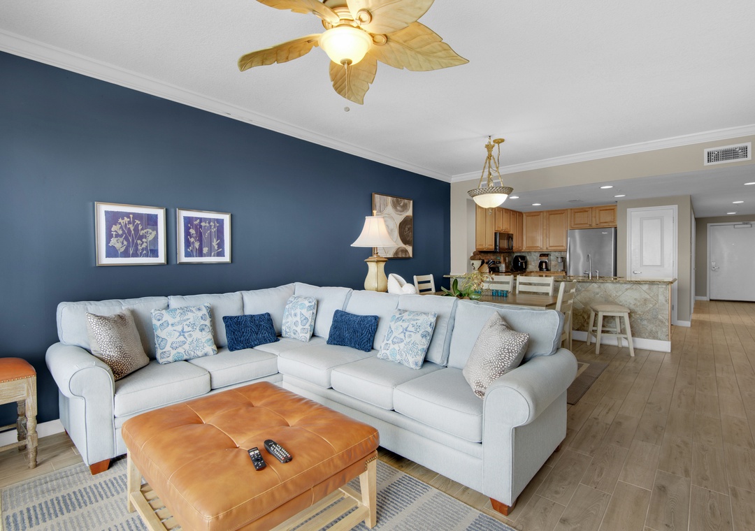 Living room has Queen Sleeper Sofa