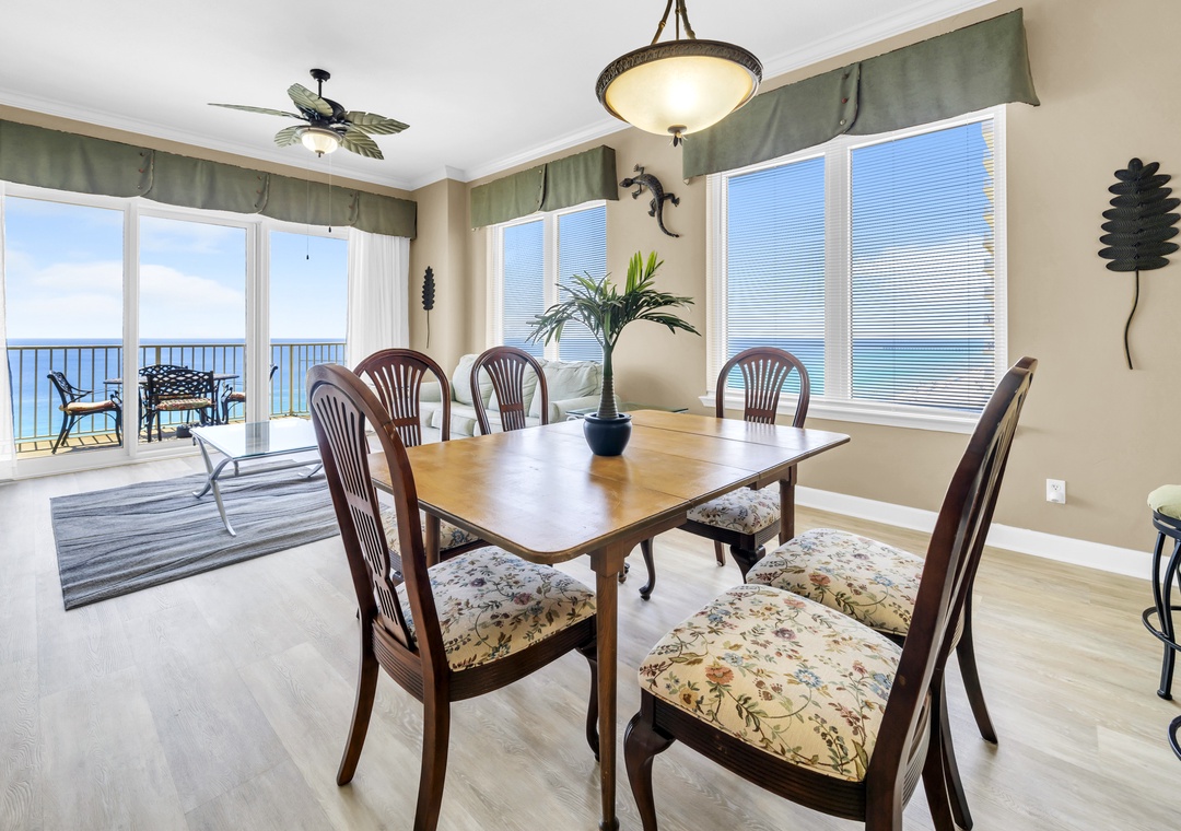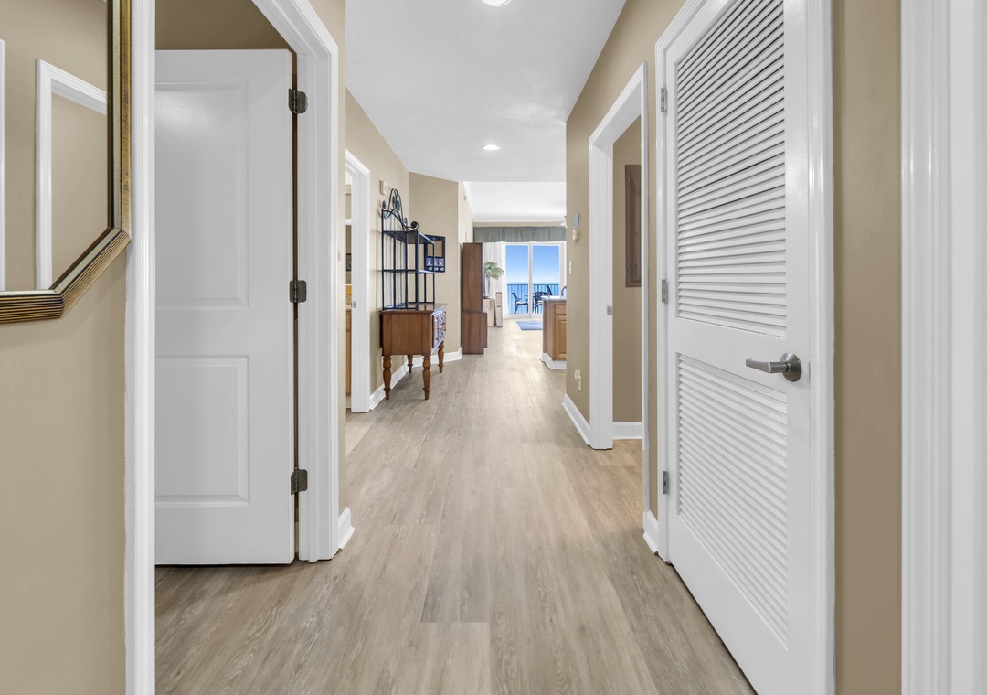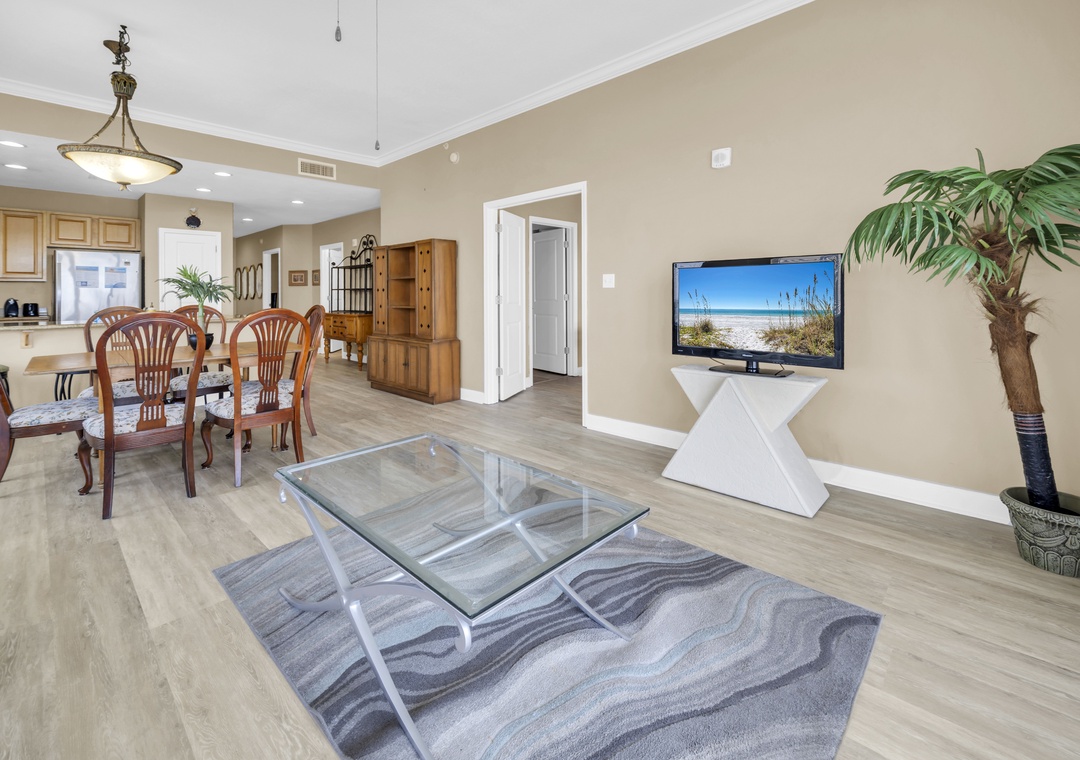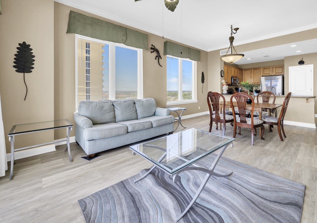 Grandview East 1505 is the ideal choice for your next trip to the Emerald Coast, offering 1,559 square feet of Gulf-front living space and breathtaking views from the 15th floor. This beautifully decorated beachfront 3-bedroom, 2-bath condo features new LVP flooring throughout, upscale décor, granite countertops, a flat-screen TV, and the convenience of a full washer and dryer. Relax on your private balcony with your favorite beverage while taking in the stunning white sand beach and watching the waves roll onto the shore. With a king bed in the master bedroom, a king in the second bedroom, a queen in the third bedroom, and a queen sleeper sofa in the living room, this spacious condo comfortably accommodates up to eight guests. It’s easy to see why Grandview East 1505 is a family favorite!