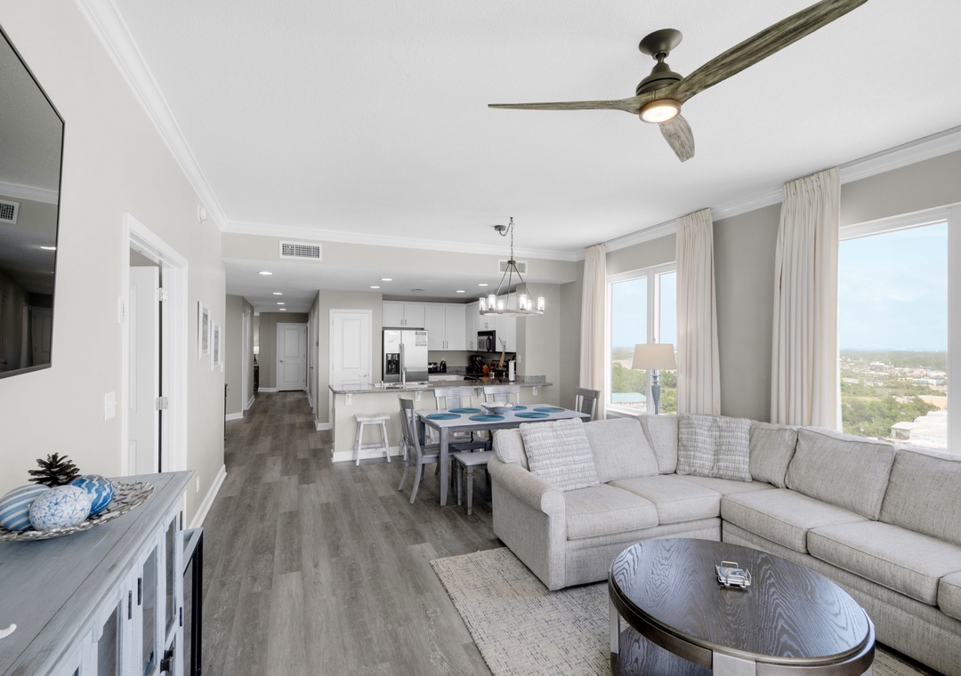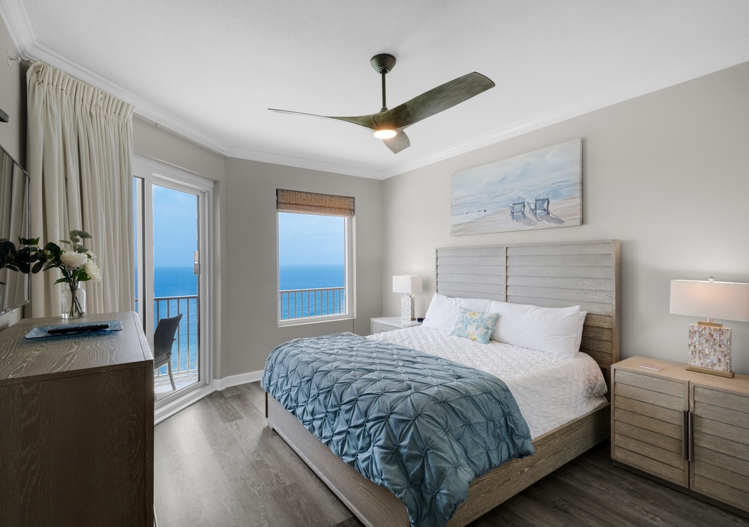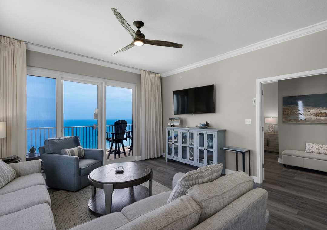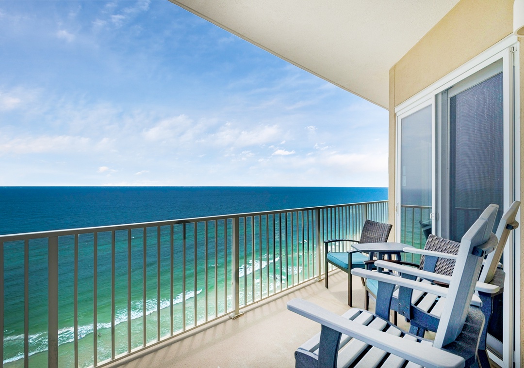 Grandview East 1601 - Azure Paradise is the perfect choice for your next trip to the Emerald Coast with 1900 square feet of luxurious living space and 10ft ceilings! This 3 bedroom, 3 bath corner unit is located on the 16th floor directly on the beach, boasting spectacular views of the Gulf of Mexico from the huge balcony, or inside from the living room and Master bedrooms. This condo has been completely updated, including NEW flooring, NEW furniture, NEW mounted TVs, and more! Relax and enjoy your favorite beverage on your private balcony, taking in the view of the white sand beach as you watch the waves crash against the shore. The two Master bedrooms both have King beds, one with a gel foam mattress, where you can also enjoy stunning views of the Gulf. The third bedroom has a queen bed and there is a queen sleeper sofa in the living room, so this beautiful condo can accommodate 8 guests! There's even a Keurig coffee maker in the kitchen for guest convenience. Come see why Grandview East 1601 - Azure Paradise is a Panama City Beach family favorite!