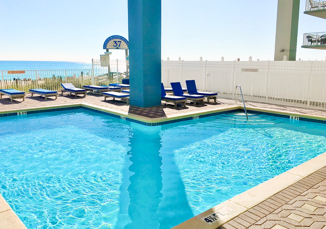 Grandview East is a fabulous 17 story boutique complex with just over 60 units in the entire building, which means an uncrowded beach for you! Each unit includes 2 parking passes to complex's nearby lot! Amenities include a Gulf Front pool, fitness center, and easy beach access. You can relax in your comfortable room or spend time on the beach soaking up the natural beauty. Grandview East has also provided a wheelchair ramp to the beach along with a wheelchair accessible mat that leads directly into the sand from the beach boardwalk. Grandview East is currently the ONLY complex in Panama City Beach to offer RECENTLY UPGRADED High Speed Internet extended to the pool and beach, so you can enjoy the gulf breezes while working and learning remotely! These vacation rentals are perfect for that Panama City getaway.