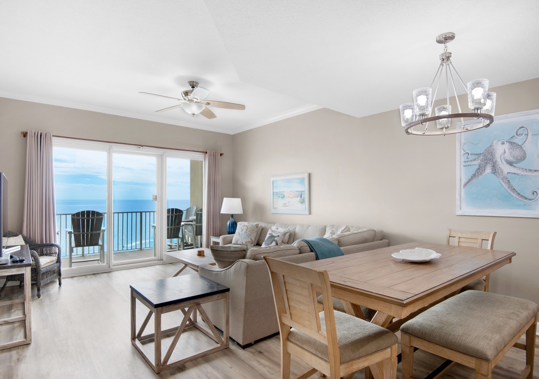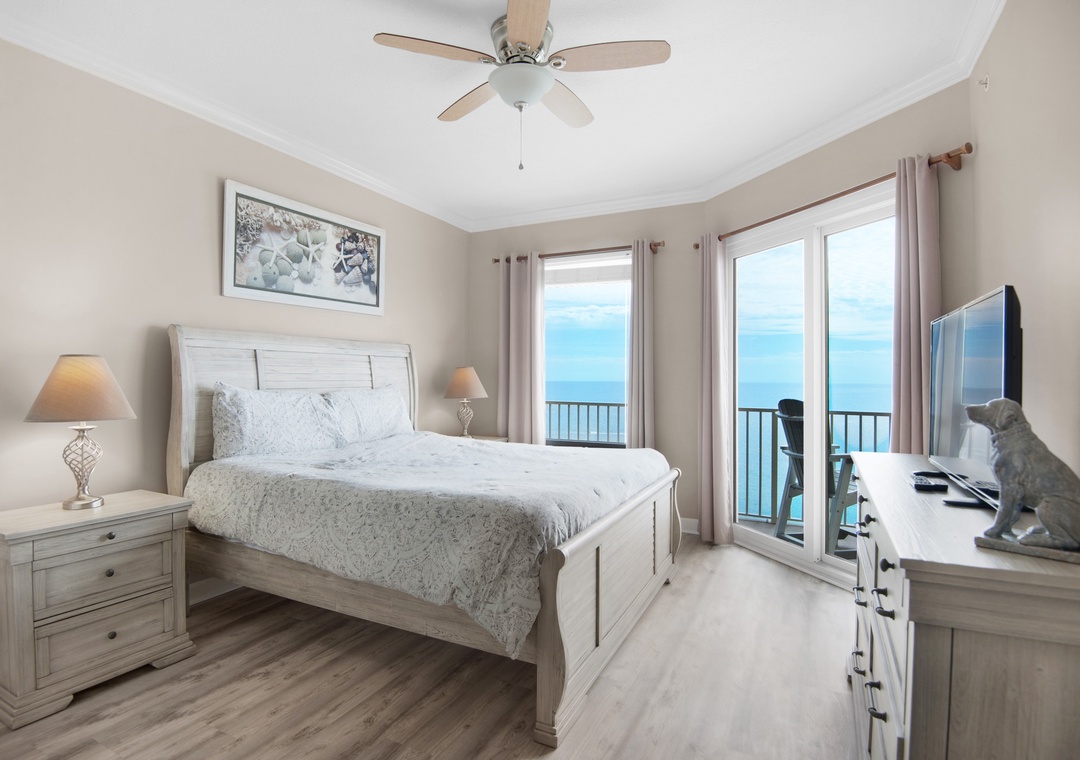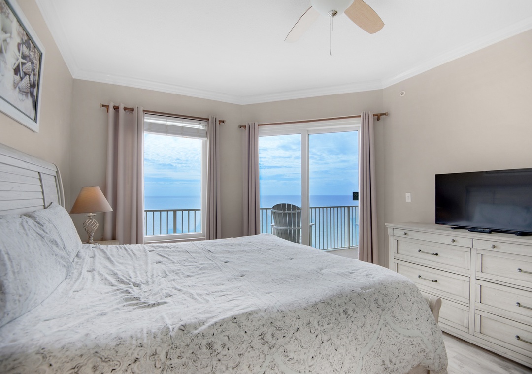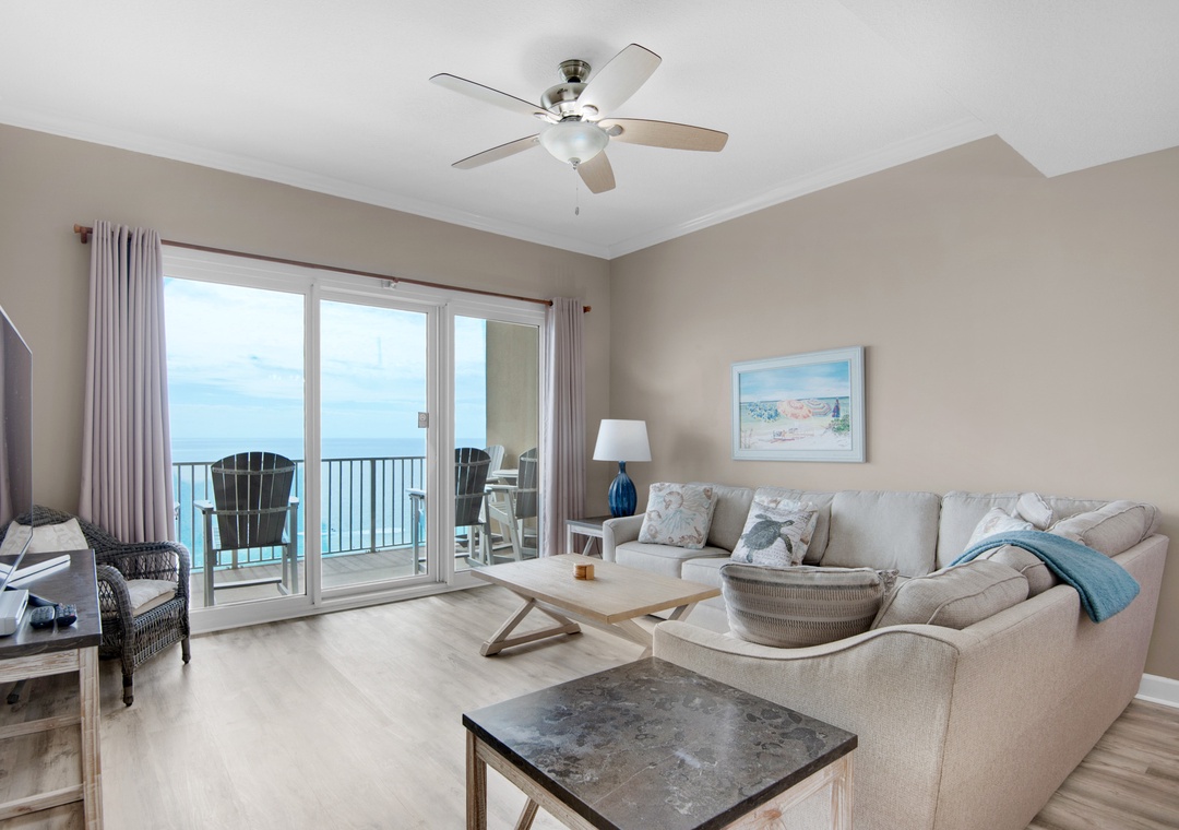Beautiful view from this condo in PCB. Condo was clean and spacious. Kitchen well stocked for making a few meals in. We had four adults and a 16 and 11-year-old. 16th floor so the view was fantastic, especially from the master bedroom. Large patio with Adirondack chairs for 6 - we sat out in the mornings drinking coffee. We were lucky to have quite a few beach days the it is just a short walk to the beach. There are beach chairs/umbrellas that can be rented but are not included with the condo. The outdoor pool was nice. Not huge but plenty big enough for this condo complex and my youngest swam a few times. Grandview East is not a huge condo complex compared to some others along the beach. It made a difference in the amount of people on the beach in front of the condo. It is walking distance to a few restaurants and bars. Many other places within driving distance and the fact that the parking was easy and accessible made leaving and coming back no problem. Our favorites were Pineapple Willy’s, Andy’s Flour Power Cafe (the best breakfast!) and Schooners. We had a wonderful week and I would recommend this condo! RealJoy vacations made it easy to access the property (no front desk they just send you the door codes) and answered any questions I had along the way.- Reviewed On: 4/20/2022