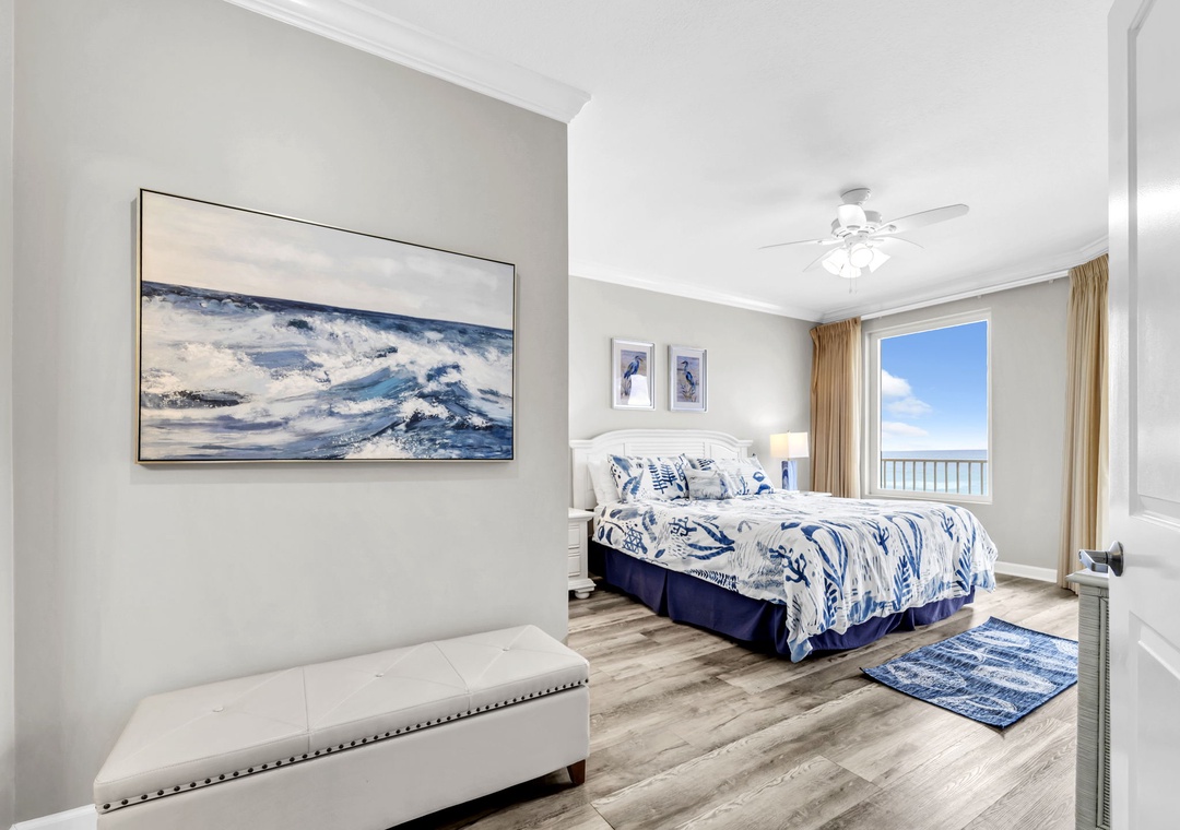 Overall it was very comfortable with beautiful decor and a peaceful feel throughout. Very comfortable bed in the master bedroom ( we only used that one) and comfy sofas in the living room. The furniture on the balcony was perfect for sitting up high or enjoying cushioned chairs down low! Very easy access to the beach and parking and, although it was across the street, it was not an inconvenience at all. You are allowed to park next to the building in a designated spot to unload. There are carts to use. The only thing that was a bit frustrating was the company that owns the umbrellas on the beach, takes up the entire waterfront and leaves very little room for guests to place their umbrellas between them and the water. It's $40 a day for a set of chairs and an umbrella if you want to use those. All that said, we decided that wouldn't stop us from enjoying our time there, so we had a wonderful, relaxing getaway. The beach was clean and the water was beautiful! There is a lot to do in the area and great restaurants to eat at. We loved this little storefront restaurant that is a hidden gem, Boricuba. Amazing food! Try their Jibarito with arroz con gandules! It was AMAZING! Also, if you have time, take a short drive to St. Andrews beach, you won't be disappointed! It's very easy to get to. And last but not least, make sure your dates are accurate before you book, no changes are allowed for even moving dates over a day, once made, they are set in stone. Thankful our original plans worked out for us!- Reviewed On: 8/27/2022