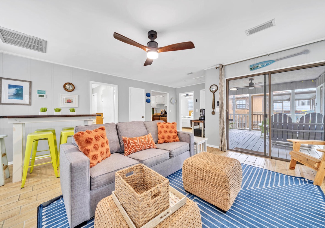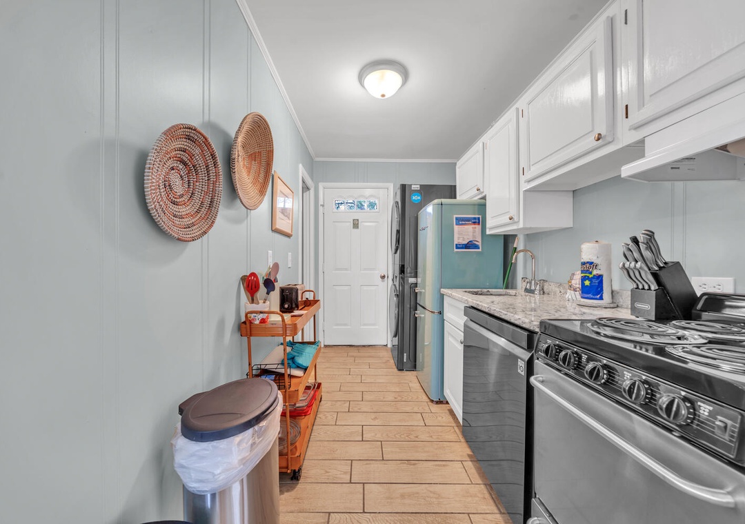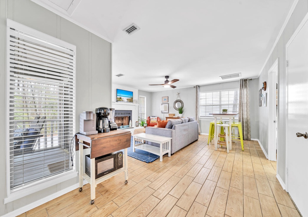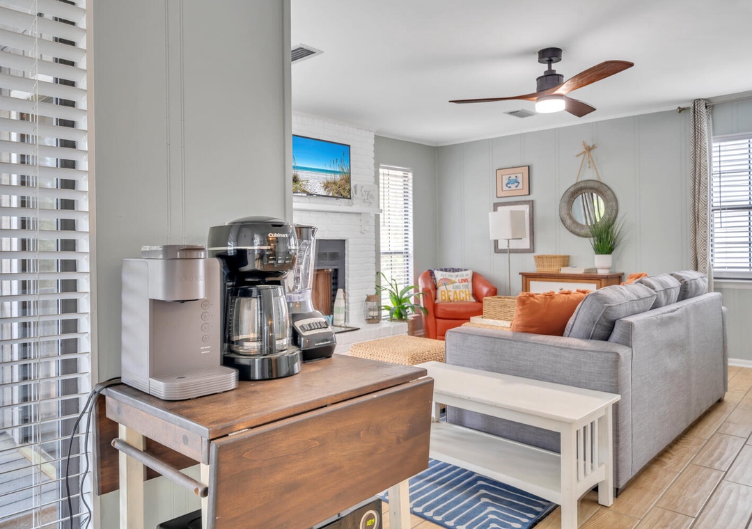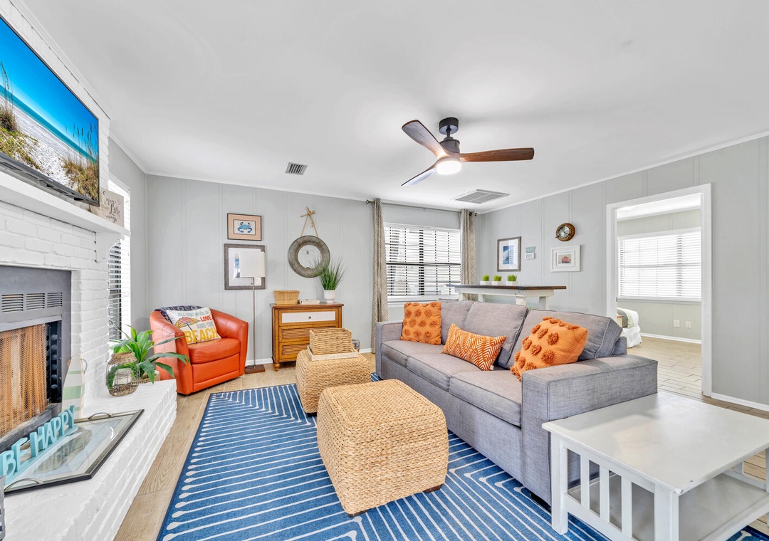Perfect, cozy little beach house. Quaint with easy beach access, We loved the front porch, the fireplace, the outside shower, the bikes...Everything! Awkward spacing of 2nd bathroom right in the living room. Only concern was the microwave table looked broken and the back of couch was slightly coming apart with sharp staples. Very minor details though. And perhaps instructions for the fans, we could never figure it out... doh- Reviewed On: 6/23/2025