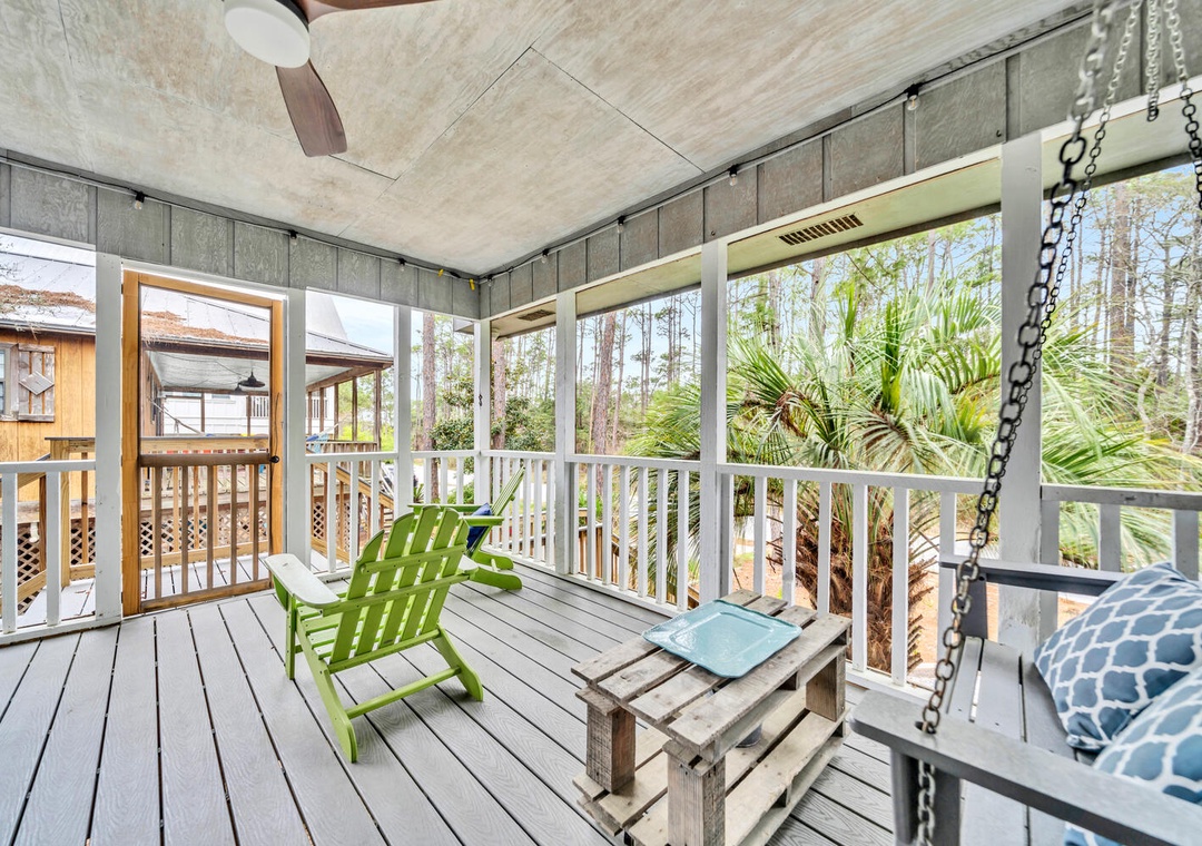 Come have a unique beach experience at Grayt Escape, a 2 bedroom, 2 bath cottage-style beach home located in a prime location of Grayton Beach. Set up on stilts, this lovely cottage features a huge screened-in porch with loads of comfortable seating. The galley kitchen has everything you'll need and you'll also have the convenience of a stackable washer and dryer. With a queen bed in the master bedroom, a twin over full bunk bed in the guest bedroom, and a sleeper sofa in the living room, this cozy cottage sleeps a total of 7 guests comfortably. There is also an outdoor shower, to rise off all the sugar white sands after a day at the beach! Relax on the screened-in porch and embrace the calming sounds of Grayton Beach or head to the emerald green waters less than 300yds away. Come fall in love with Grayt Escape and make it your family vacation tradition!