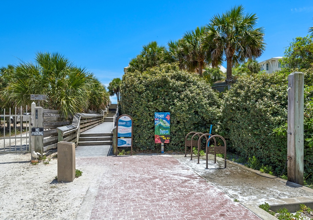This place was exactly what we were hoping for. Very short walk to the beach (75 yards to the pier, then another 75 or so yards to the sand with a couple sections of steps). The house was very spacious and open. The bedrooms were not crammed at all. We loved the front porch for coffee In the mornings and so did our family staying in the guest house above garage. We weren’t able to find a cut through to Red Bar area, so that made going to restaurants easier to drive. Without a baby we would have been able to bike to all the areas much easier. This was a 5 minute drive to Seaside which was nice.