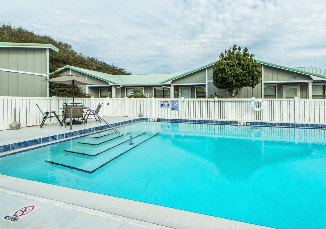 A public beach, not too crowded, is 1.5 blocks away! There were jets and helicopters flying over the beach constantly during the day, which our toddler loved. Close to coffee shop and restaurants. We used the kitchen and the little grill on the patio. Also, the pool was refreshing after we all got sunburned.- Reviewed On: 7/13/2024