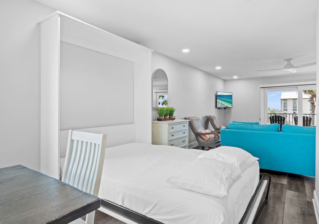Just 200 yards from the sugar-white sands of Miramar Beach, Gulf Winds #1 is the perfect beach retreat for couples or small families. This beautifully updated townhome comfortably sleeps 8 guests with a king bed, queen bed, twin-over-twin bunk, and a queen Murphy bed. Both bedrooms are located on the first floor and feature en-suite bathrooms, along with access to a private patio or balcony—ideal for enjoying the coastal breeze. Upstairs, the second floor boasts a cozy living area with water views from the sofa, plus a fully equipped modern kitchen and dining space for home-cooked meals. This family-friendly townhome also includes private beach access, a refreshing community pool, and two private balconies—everything you need for a relaxing and memorable beach getaway!