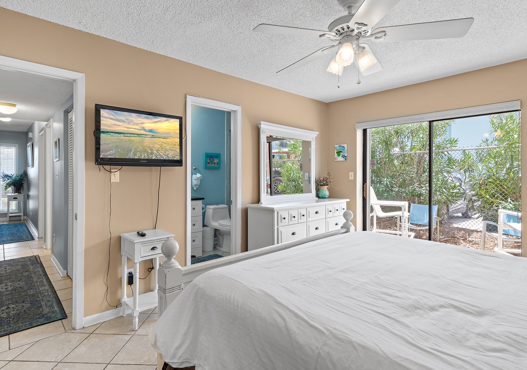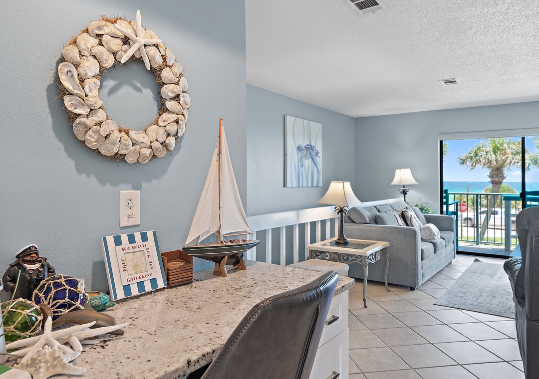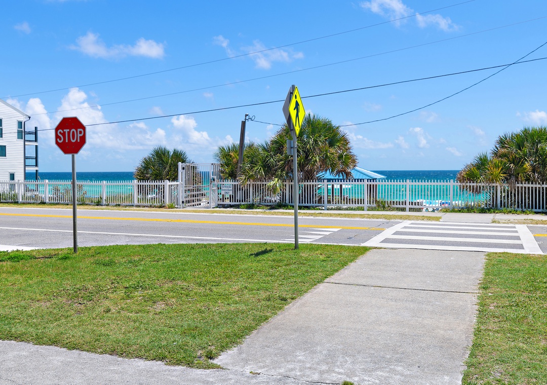 The bedrooms are on the first floor, each offering privacy and comfort after a day in the sun. Head upstairs to the second floor, where you'll find a cozy living room, fully stocked kitchen perfect for family dinners, a built-in desk area for catching up on emails, and a balcony with water views—the perfect spot to enjoy your morning coffee or evening breeze. Step outside your front door to the community pool, and just across the street you'll find your private beach access to one of the most beautiful shorelines in the world. With its ideal location, thoughtful amenities, and coastal charm, The Turtle’s Nest has everything you need for a relaxing and memorable beach vacation.