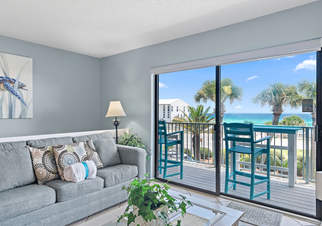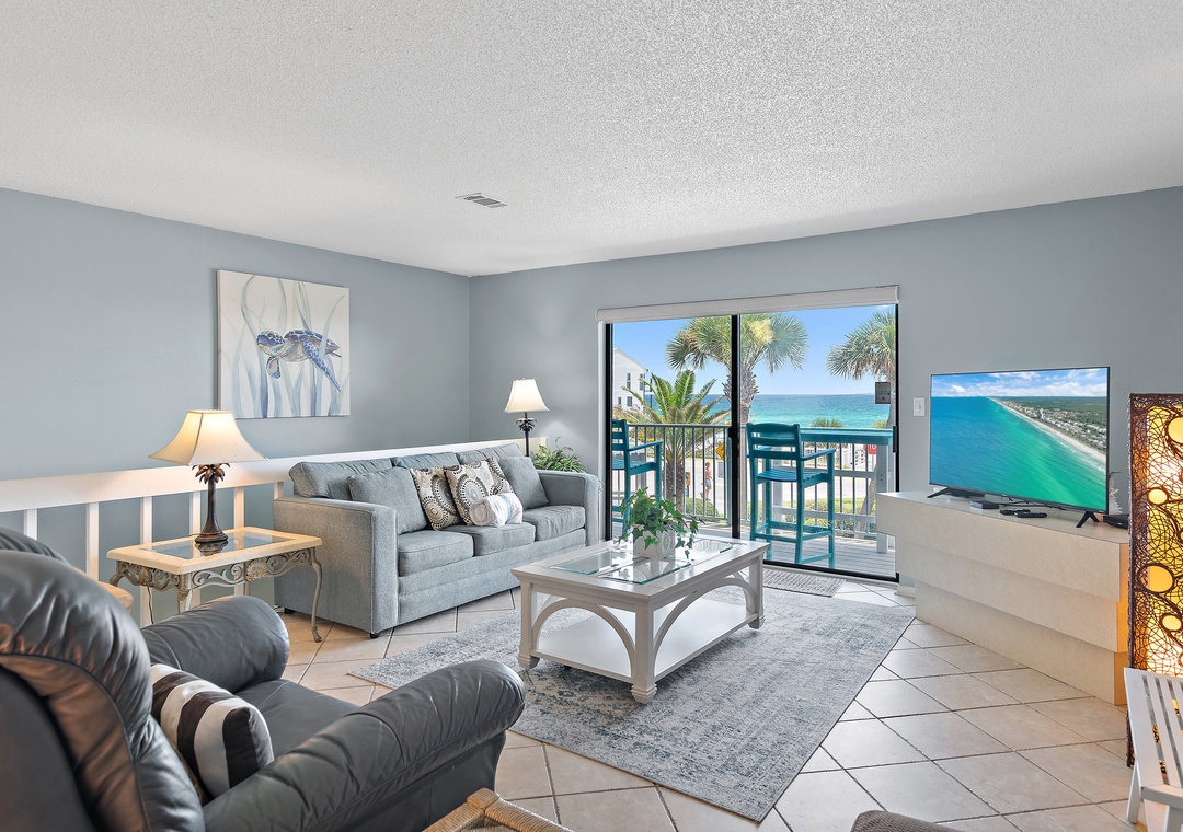 Welcome to The Turtle’s Nest—your perfect beach retreat at Gulf Winds East #10! Located just 200 yards from the sugar-white sands of Miramar Beach, this charming end-unit townhome is ideal for couples or small families, comfortably sleeping 6 guests with a king bed in the master bedroom, a queen bed in the guest room, and a queen sleeper sofa in the living area.