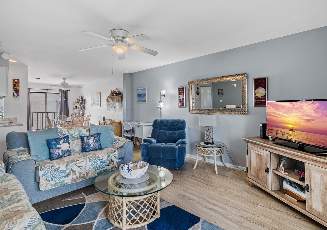 We had a wonderful week in Gulf Winds East #3 again. The condo is conveniently located right across the street from the beach with private access. The kitchen was fully stocked with everything we needed, including a crockpot, which made for easy meal prep and more beach time. The beach decor throughout the condo is a little over the top but you can tell the owners love this home. The new couches and recliner are beautiful but the recliner is in the wrong spot to watch the TV. The dresser drawers are also getting hard to open. The new shades are a great improvement and when one came off its roller, Harmony maintenance was there to fix it immediately. We appreciated the late checkout, too!- Reviewed On: 4/7/2024