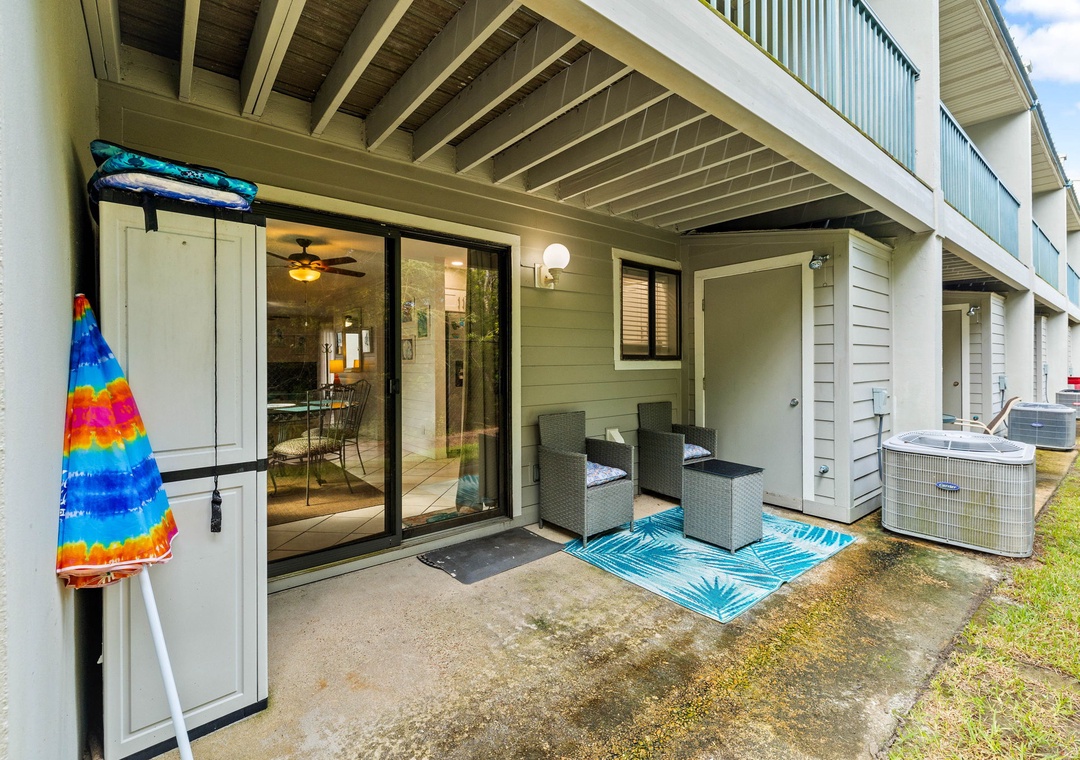 Our family of 5 had a great week in this rental. It's an easy walk to the private beach, nice and quiet end unit, parking right out the front door. You will need a car but many shops and restaurants are within 5 miles.- Reviewed On: 6/22/2024