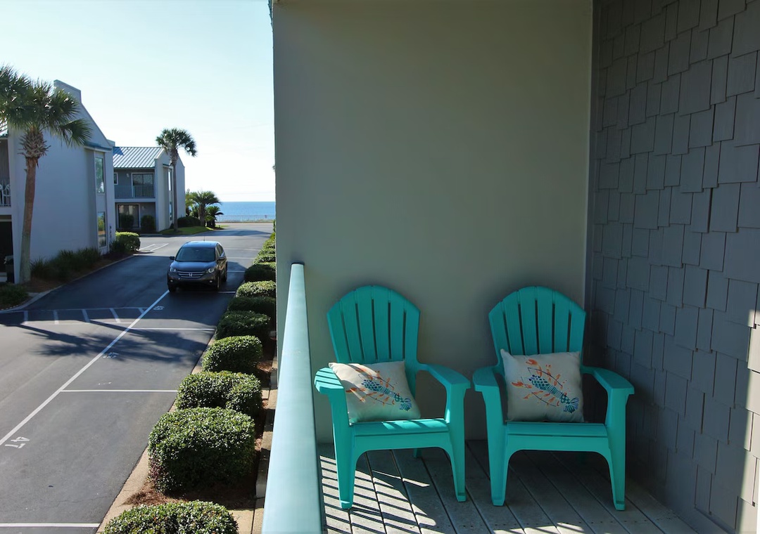 Welcome to Gulf Winds East #45, a spacious 2BR/2.5BA townhome just steps from the sugar-white sands of Miramar Beach! This beach retreat comfortably sleeps up to 8 guests with a king bed, queen bed, twin-over-twin bunks, and a sleeper sofa—making it perfect for families or groups. On the first floor, you'll find a bright and open living area with cozy seating, a large flat-screen TV, and direct access to the balcony. The fully equipped kitchen features stainless steel appliances and all the essentials for preparing family meals after a day in the sun. A convenient half bath is also located on this floor. Head upstairs to the second floor, where you’ll find two bedrooms, each with private balconies for enjoying the coastal breeze. The master bedroom offers a king bed, an en-suite bathroom with a walk-in shower, and a peek-a-boo Gulf view from its private balcony. The second bedroom features a queen bed and two twin beds—ideal for kids or extra guests.