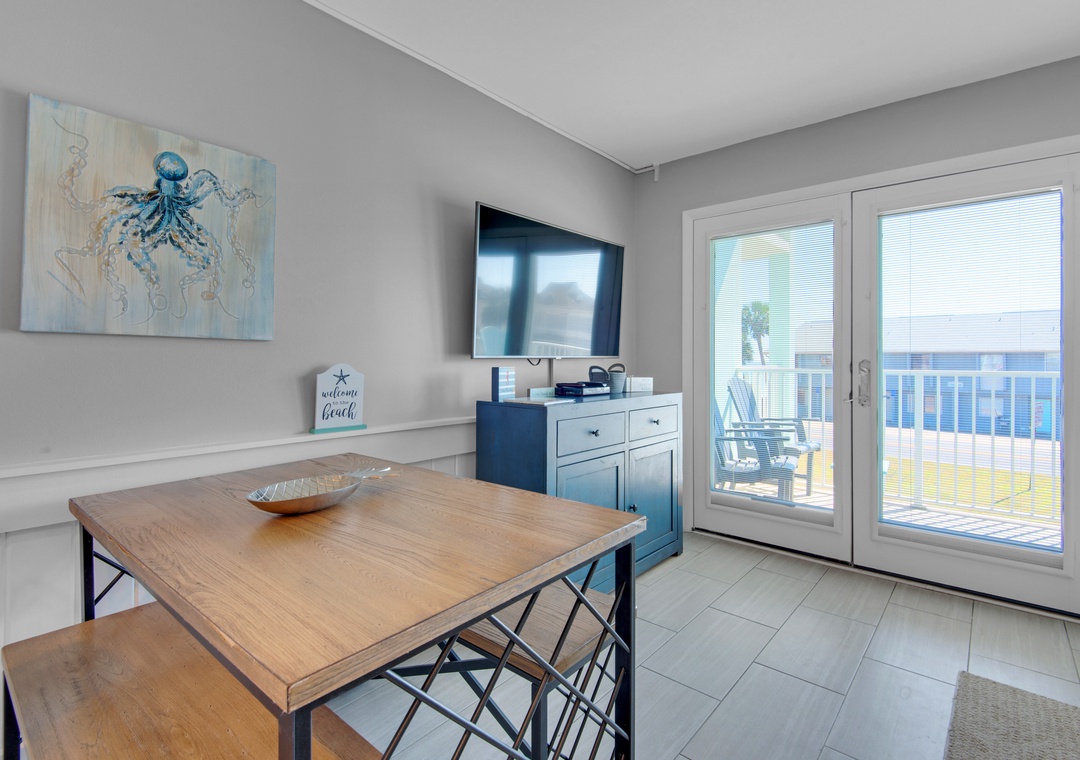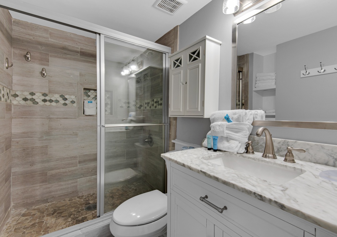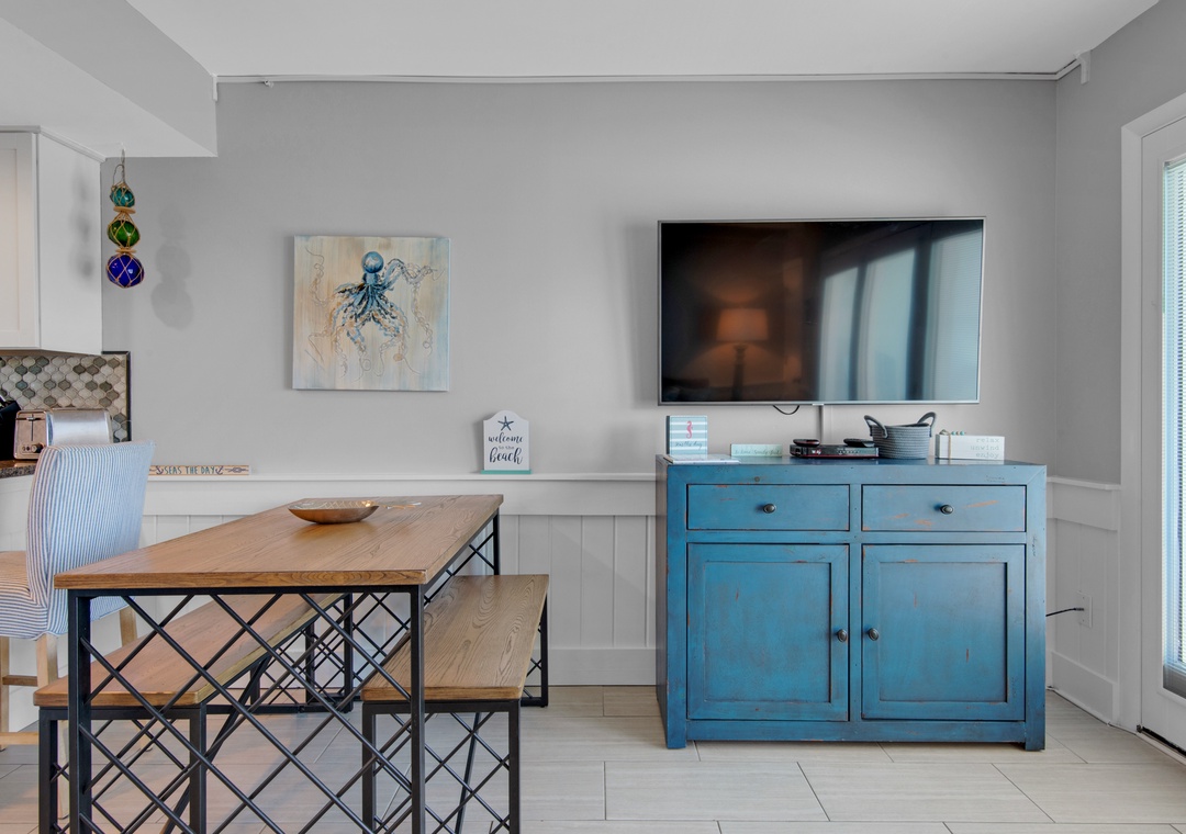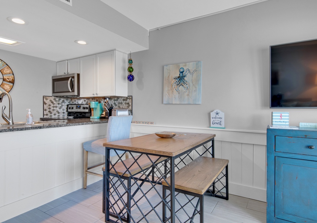 My family of 4 really enjoyed this condo. The location to beach access is easy. The condo was stocked with useful kitchen utensils, is comfortable and inviting, is tech savvy, has a good view of the beach & street activity. Master bed and pullout couch bed are both comfortable. We were grateful for TV and dish network during down time. The only complaint is that, on VRBO, the condo is listed as having two bathrooms. It only has one.- Reviewed On: 8/3/2022