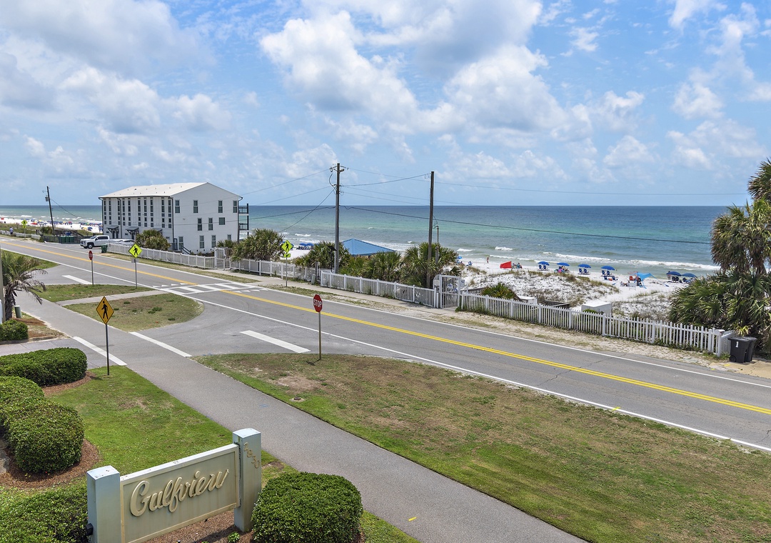 Gulfview Condominiums is a complex of vacation rentals just across the street from Miramar Beach. Featuring 200 feet of private beach and a refreshing pool all surrounded by immaculate landscaping, this complex fits the bill. Gulfview is within walking distance of Kenny D's, Pompano Joe's and Captain Dave's restaurants, and close to 5 miles of biking/walking trails. There is no elevator at this property. Please be advised that the use of golf carts is strictly prohibited within this complex, any golf carts found on the premises will be towed at the guest's expense. This policy is in place to ensure the safety and convenience of all residents and visitors. We appreciate your understanding and cooperation in adhering to this rule.