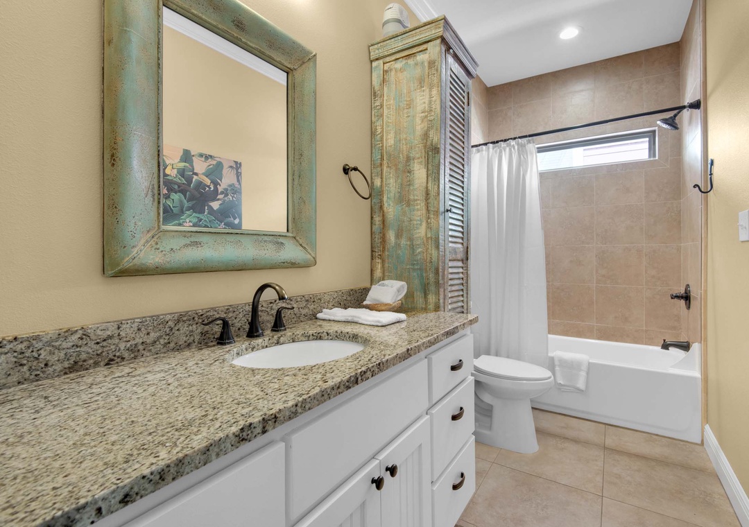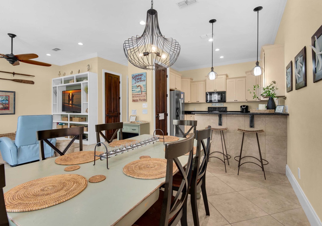 Welcome to Happily Ever After, a charming, modern 4BR/3.5BA home located in the fab Villages of Crystal Beach. It has all the features you'd expect in an upscale vacation home, including flat-screen TVs, granite countertops, and gorgeous flooring throughout. This two-level home has plenty of room to spread out with two living areas and multiple outdoor spaces. The spacious master bedroom will make you feel like royalty, boasting a king bed, walk-in closet, and stunning ensuite bathroom. There is a second bedroom with 2 twin beds, and two additional bedrooms both offering queen beds, There's also a queen-sized air mattress, allowing this home to accommodate 12 guests. Guests will love the full-sized laundry room with a washer and dryer. Nearby you will find 6 miles of paved trails - perfect for both walking or biking. Your group will be sure to find their Happily Ever After!