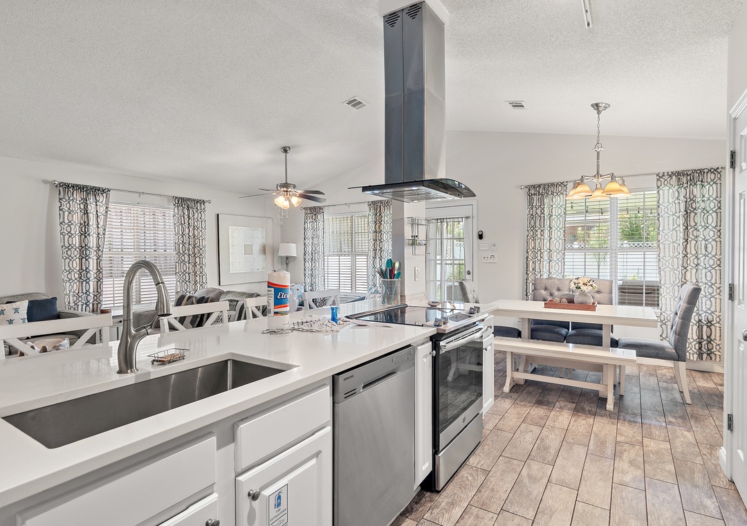 Welcome to Happy Horizons! This charming 3-bedroom, 2-bath home in the desirable SunSail neighborhood offers an open floor plan with a spacious living room and a fully equipped, updated kitchen. Step outside to the covered back porch and enjoy your morning coffee in a peaceful coastal setting. The home comfortably sleeps up to 10 guests, with a king bed in the master suite, a queen in Guest Bedroom 1, and a full-over-full bunk with a trundle in Guest Bedroom 2—plus a queen sleeper sofa in the living room. Just steps from the community pool, it’s the perfect spot for a relaxing day in the sun. Beach and fishing gear are also provided to help you make the most of your coastal getaway!