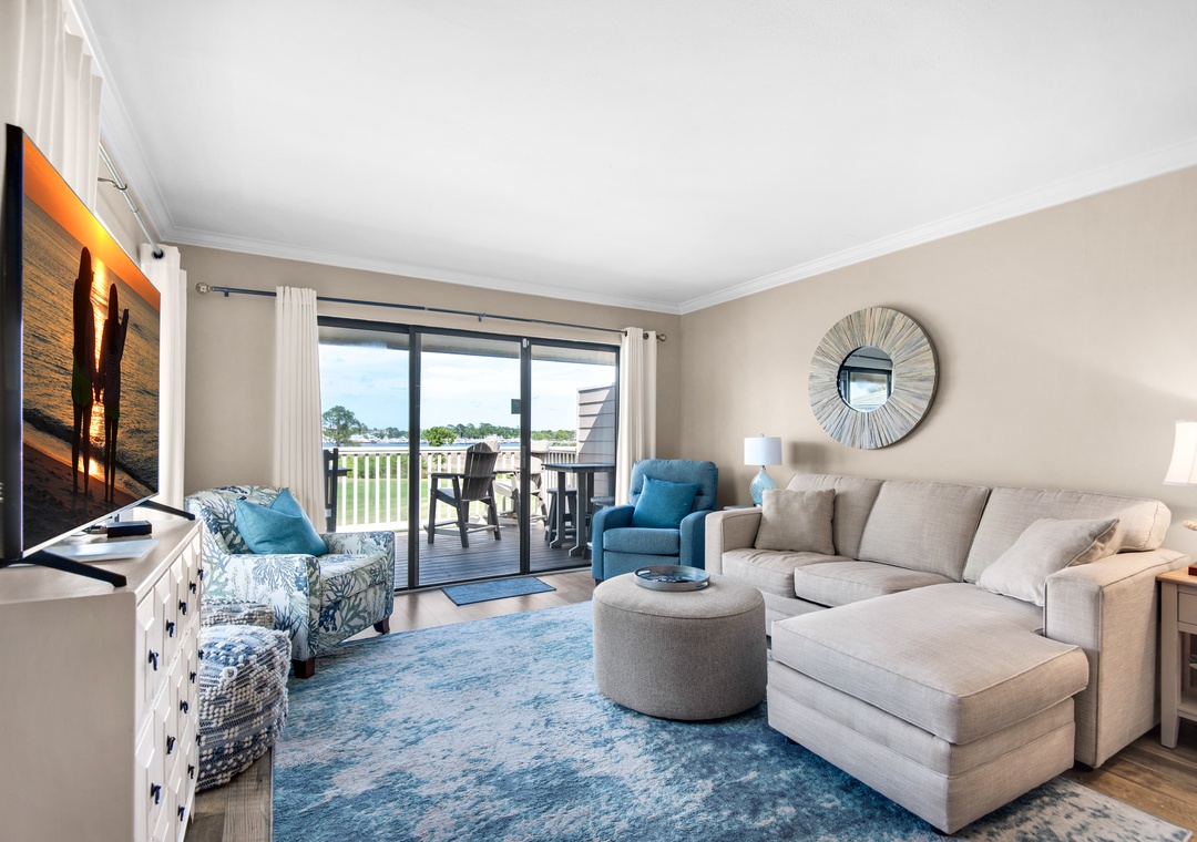 Harbour Hideaway is a beautiful corner condo at Harbour Point in Sandestin Golf and Beach Resort! This completely updated, 2BR/2BA condo is nestled on the golf course and features stunning Bay Views! Enjoy granite counters and stainless-steel appliances in the kitchen, updated flooring throughout, a large balcony off the living room, plus a smaller balcony off the master bedroom! There’s also a washer/dryer set up, and a lakefront community pool less than 300ft away and two other resort pools you will have access to! With a king bed in the master bedroom, a king bed in the guest bedroom, and a sleeper sofa in the living room, this premier condo sleeps 6 guests comfortably. Come see why Harbour Hideaway is a family favorite!