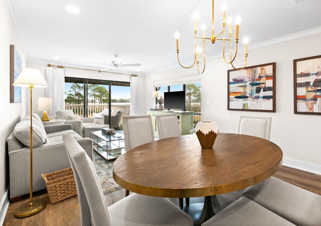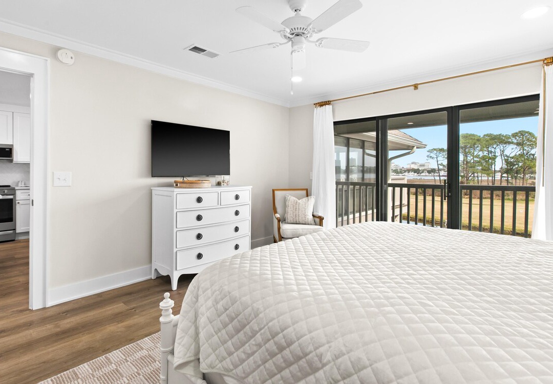 Harbour Point 810 is a beautiful luxury condo at Harbour Point in Sandestin Golf and Beach Resort! This completely updated, 2BR/2BA condo is nestled on the golf course and features stunning Bay Views! Enjoy granite counters and stainless-steel appliances in the kitchen, updated flooring throughout, a large balcony off the living room, plus a smaller balcony off the master bedroom! There's also a washer/dryer set up, and a lakefront community pool and two other resort pools you will have access to! With a queen bed in the master bedroom, a king bed in the guest bedroom, and a sleeper sofa in the living room, this premier condo sleeps 6 guests comfortably. Come see why Harbour Point 810 is a guest favorite!